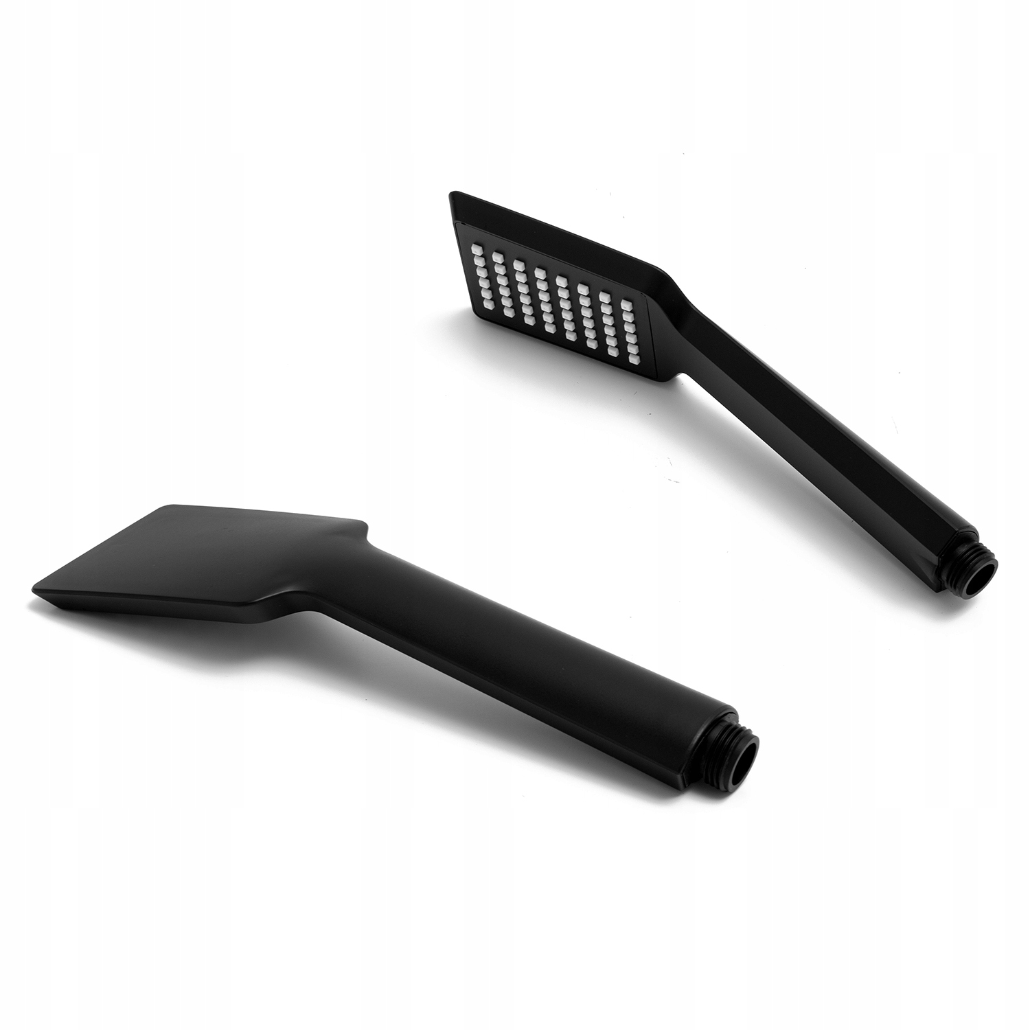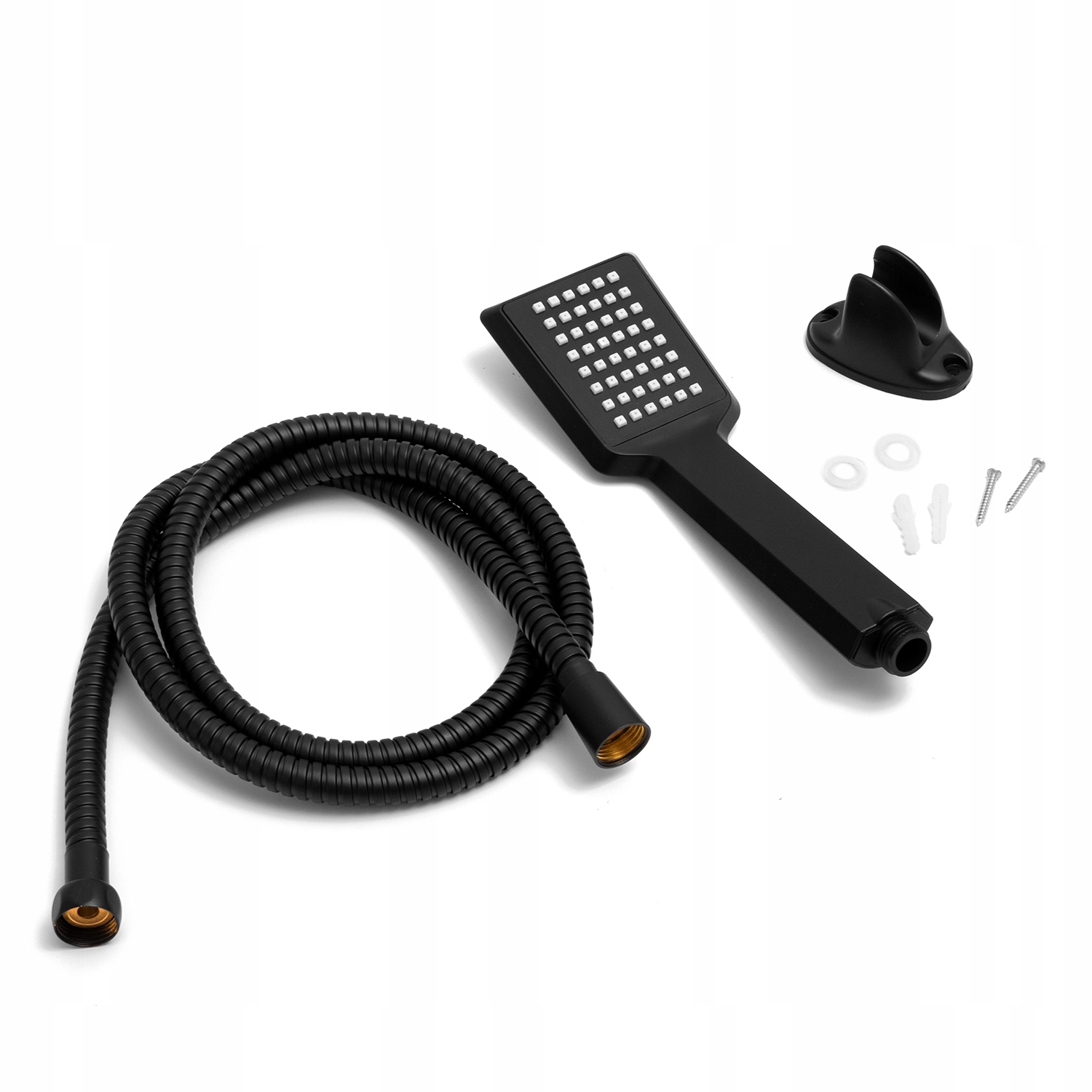 W komplecie znajduje się jednofunkcyjna słuchawka prysznicowa, ścienny uchwyt oraz elastyczny wąż bezskrętny – całość w eleganckim, czarnym macie.