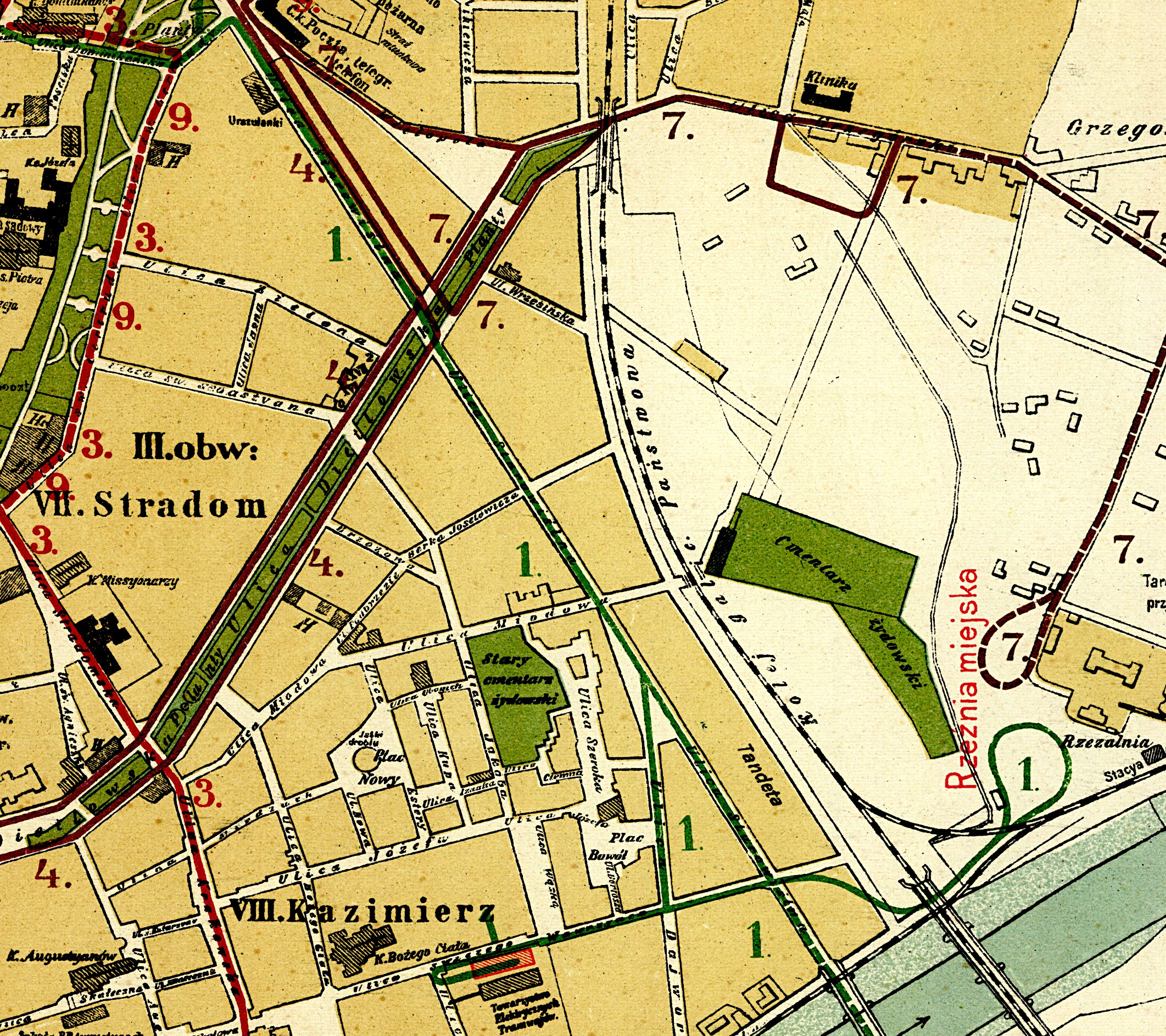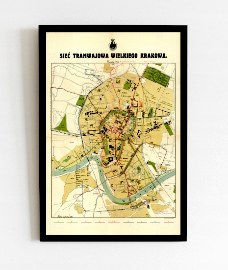 Stary plan Miasta Krakowa Siec Tramwajowa Wielkiego Krakowa 1917r. 70x50cm