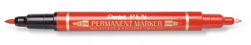 Marker permanentny zdwiema końcówkami N75W Pentel, pisze po każdej powierzchni takiej jak plastik, metal, szkło, drewno, taśma pakowa, płyty CD, płyty DVD oraz specjalnie powlekane powierzchnie.