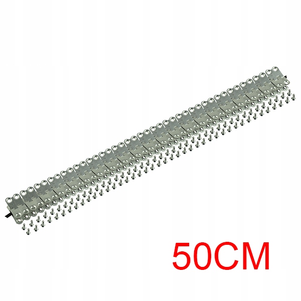 Komplet zawiera 2 połówki spinki po 504mm, śruby montażowe oraz linkę stalową w oplocie do połączenie elementów.