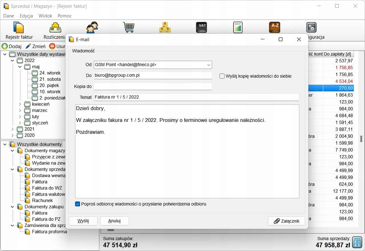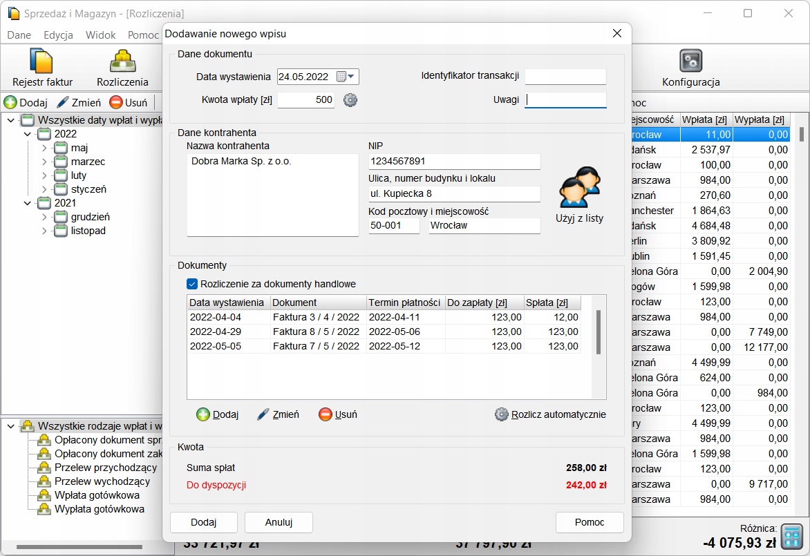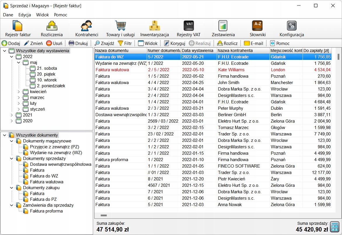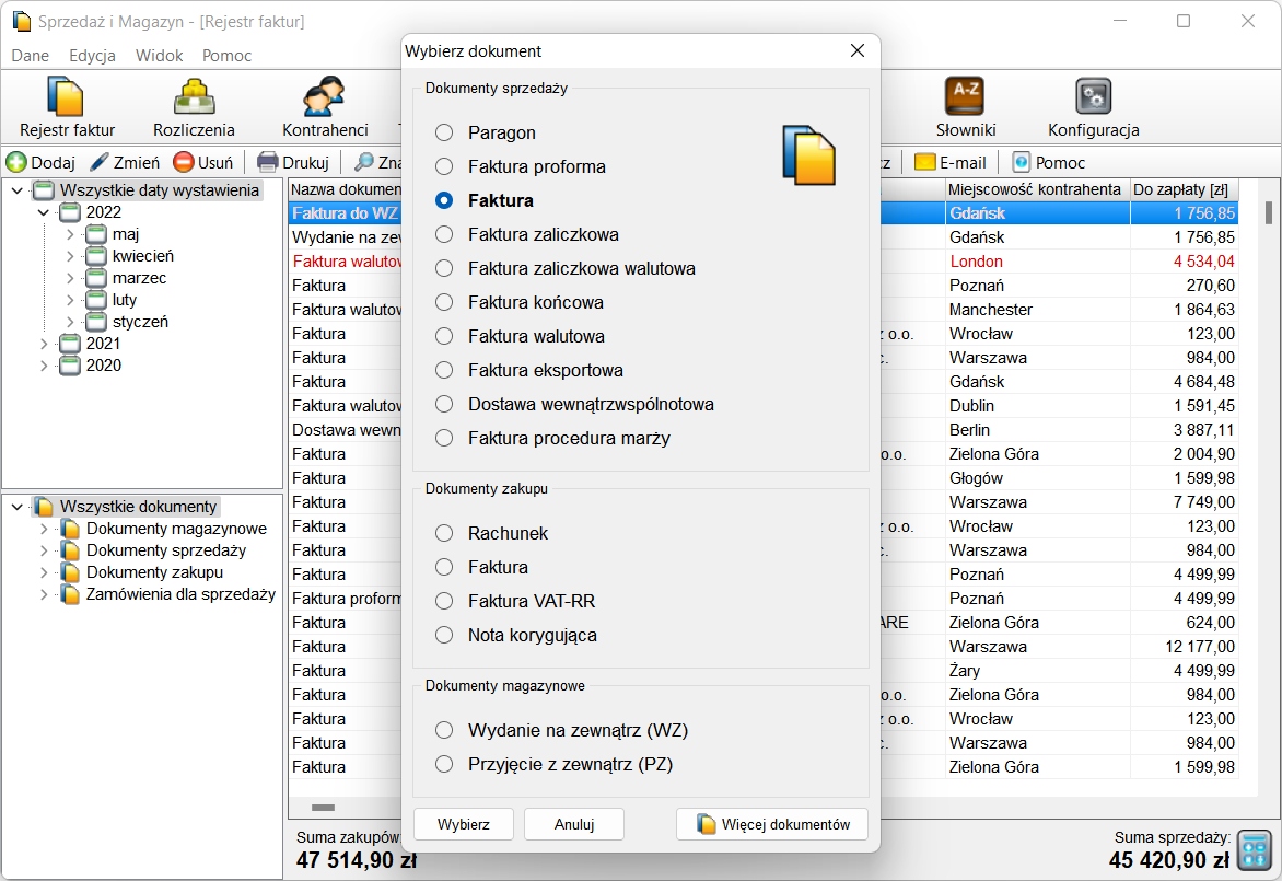 Sprzedaż i Magazyn to aplikacja do fakturowania i zarządzania magazynem dla firm handlowych o różnych profilach działalności. Przejrzysty i ergonomiczny interfejs pozwala na błyskawiczne i wygodne wystawianie i ewidencjonowanie dokumentów oraz zarządzanie magazynem.