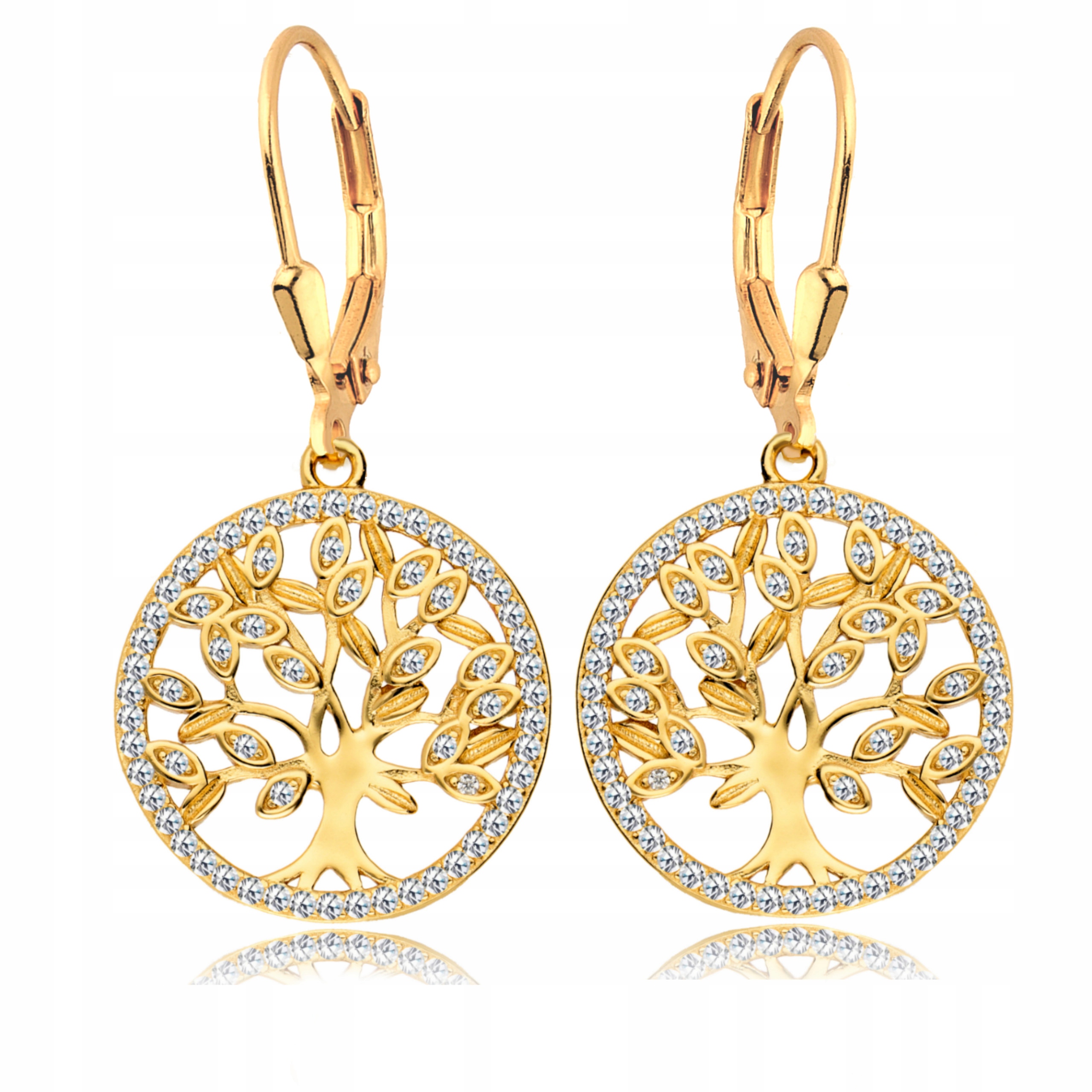Piękne pozłacane kolczyki drzewka szczęścia z cyrkoniami. Kolczyki wykonane w całości z najlepszej próby złoconego srebra 925. Kolczyki bardzo modne w tym sezonie przyciągają wzrok i doskonale się prezentują na uszach. Wspaniały prezent na różne okazje.