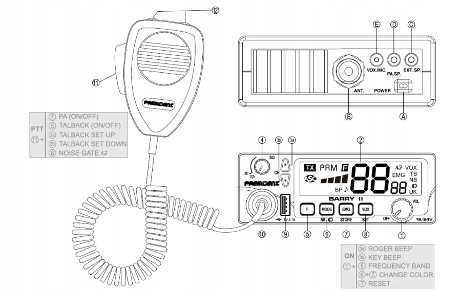 CB radio President Barry II 12/24V: