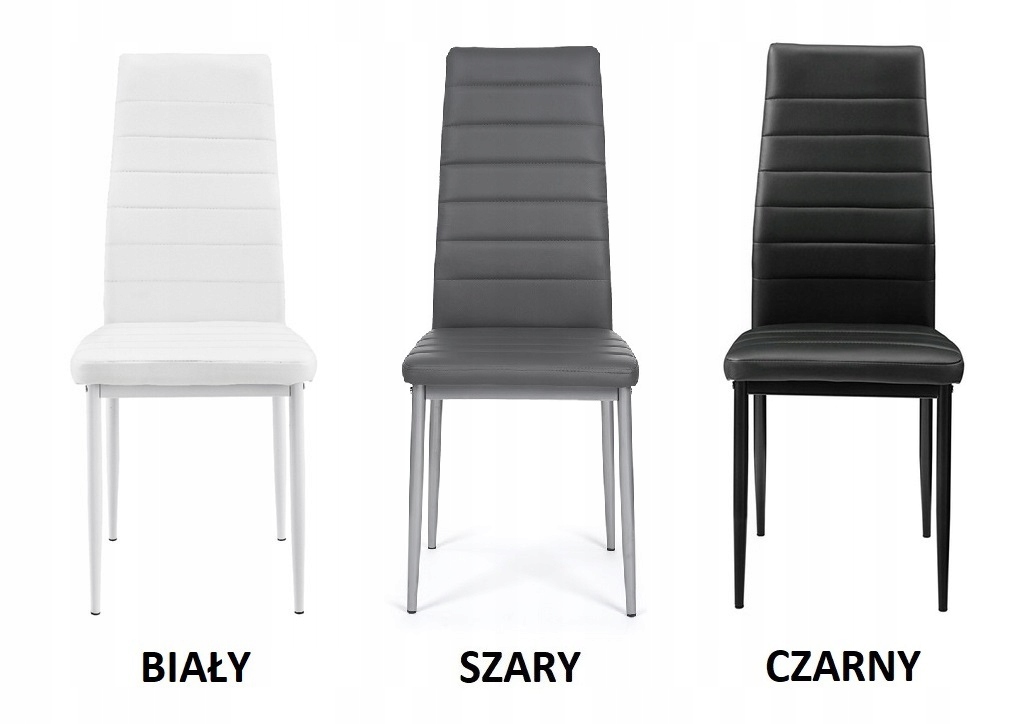 Wykonane z najwyższej jakości surowców. Siedzisko oraz oparcie wykonane jest z ekoskóry. W krześle zastosowano nogi metalowe, które dają niepowtarzalny efekt w każdym mieszkaniu. Nogi maja zabezpieczenia przed uszkodzeniem paneli podłogowych, drewnianych podłóg, powierzchni lakierowanych i podłóg ceramicznych. Możliwość mieszania kolorów w zestawie.