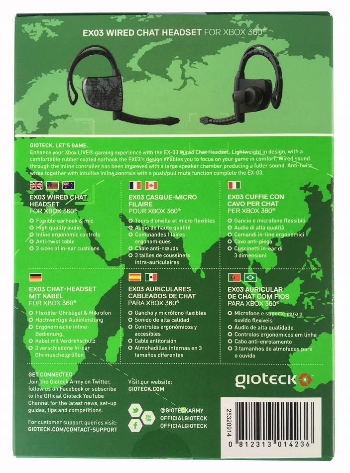 Headset Gioteck EX-03. Słuchawka z mikrofonem do urządzeń z jack 2,5 mm oraz jack 3,5 mm (przejściówka w zestawie)