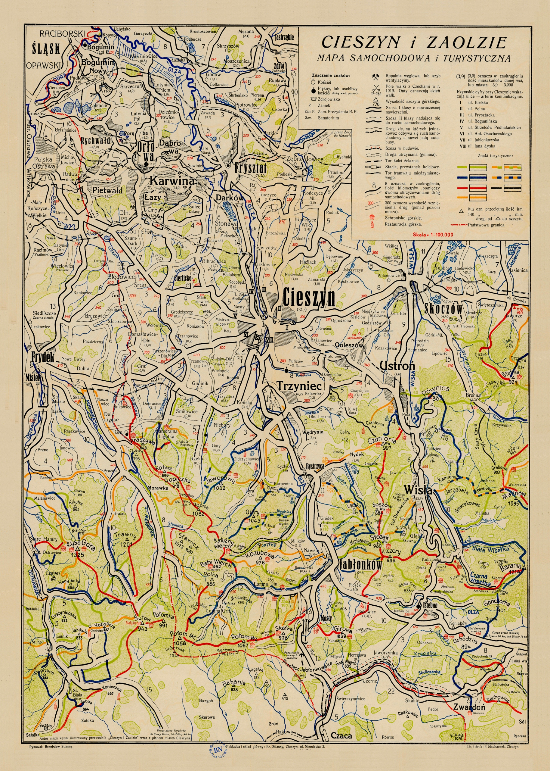 Stara mapa Cieszyn i Zaolzie 1939r. mapa samochodowa i turystyczna