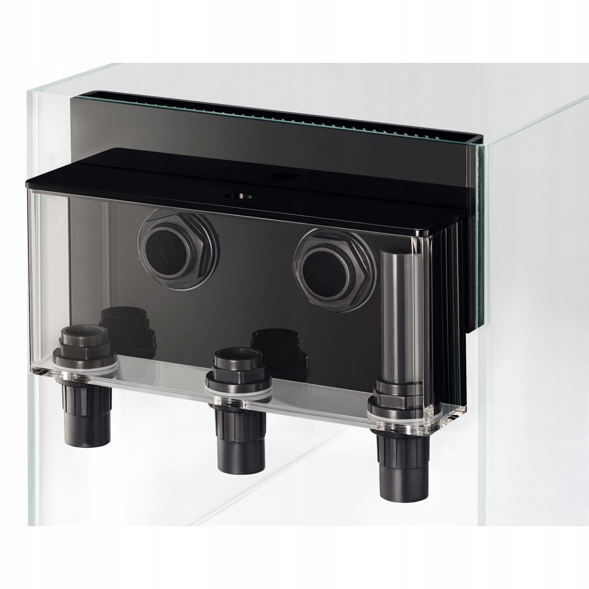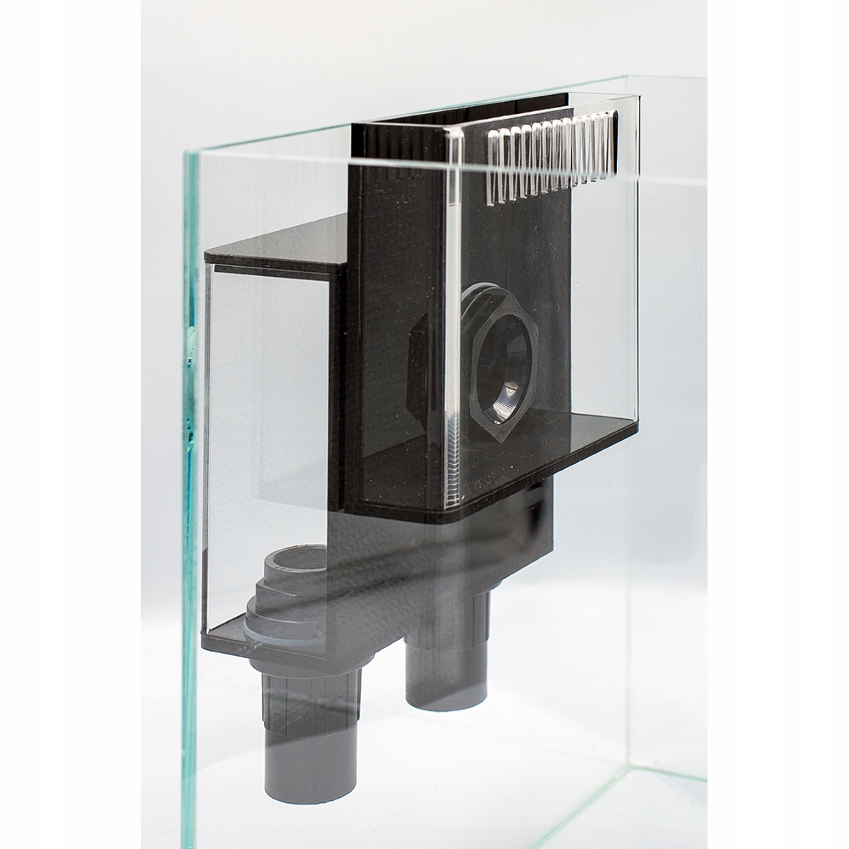 Do połączenia sumpa z akwarium doskonale sprawdzi się Pudełko Przelewowe OF600. Posiada niewielkie wymiary 29 x 15 x 10 cm. Pozwala na maksymalny przepływ dochodzący do 6 000 l/h. Zostało wykonane z niezwykle wytrzymałego przezroczystego akrylu, który umożliwia kontrolę jego pracy. Działa na zasadzie naczyń połączonych i pozwala na przetransportowanie wody z akwarium do sumpa. Wpadająca przez grzebień woda przepływa w dół. Zgodnie z prawami fizyki przepływa poza akwarium przez otwór w szkle. Stamtąd przy pomocy rury zrzutu trafia do sumpa. Konstrukcja została wyposażona w rewizję zapobiegającą przelaniu się wody. Po przefiltrowaniu czysta woda wraca do akwarium, dzięki pracy pompy obiegowej.