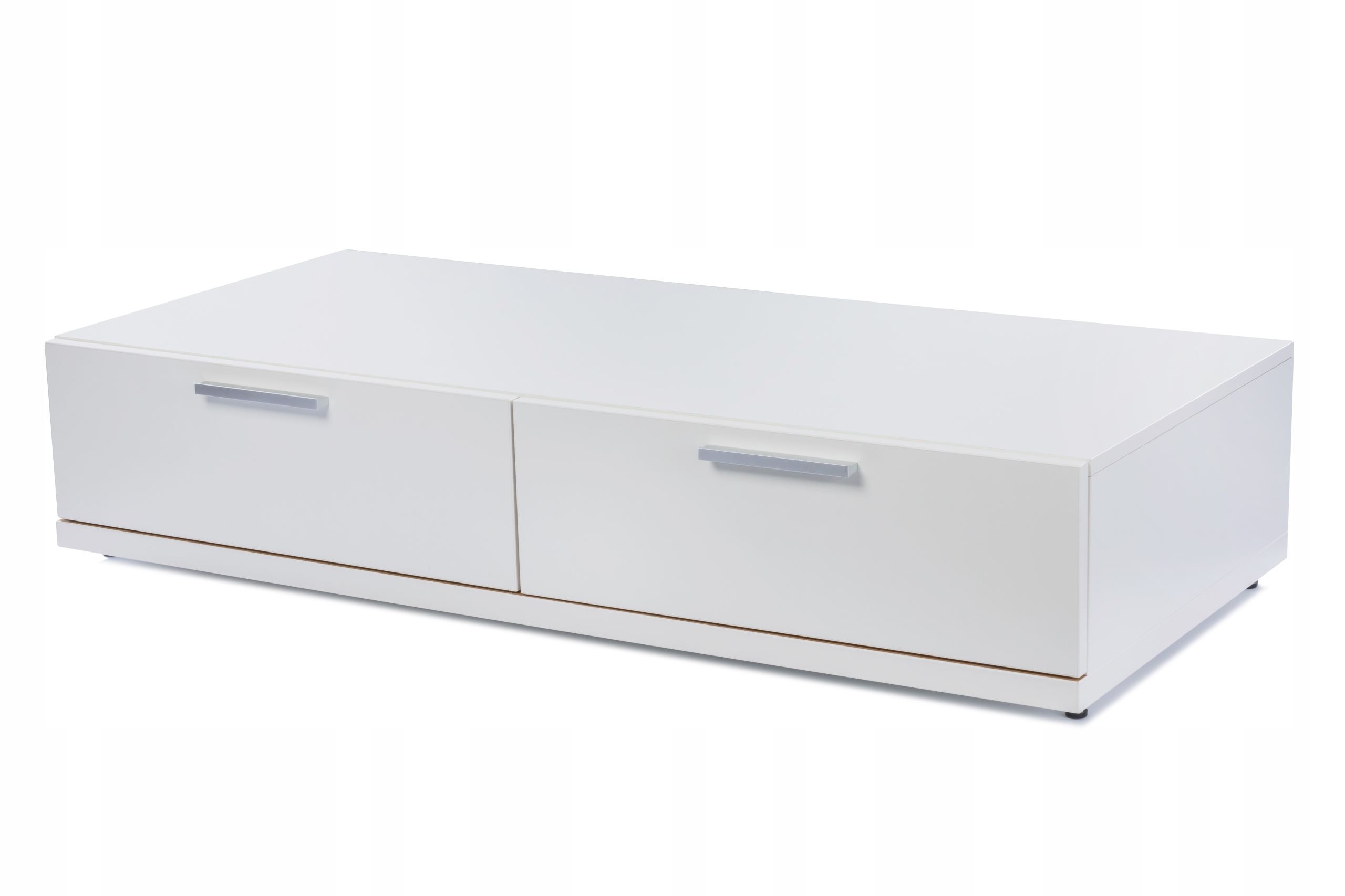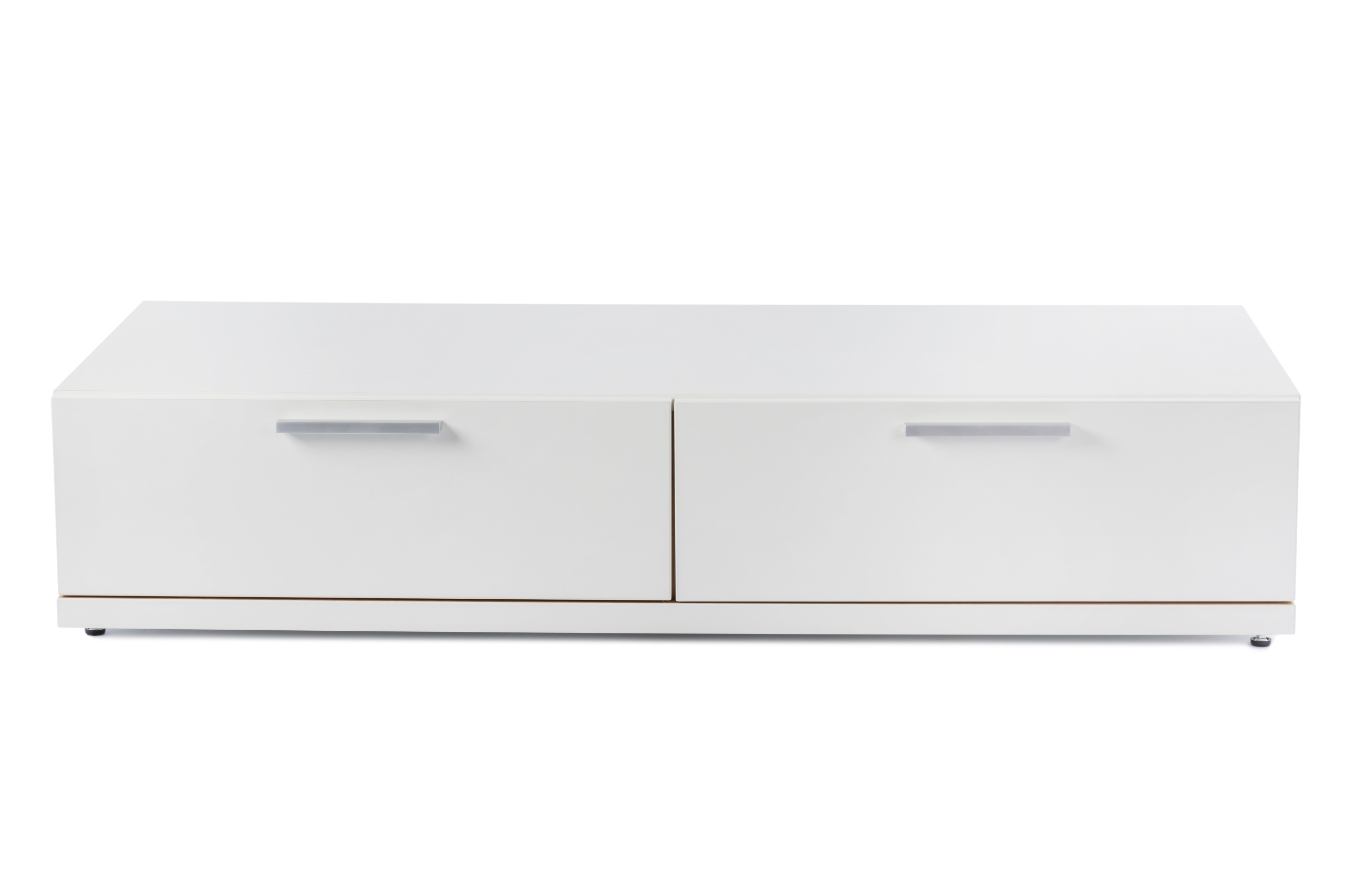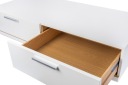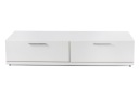Podnieś poziom swojego salonu dzięki naszej eleganckiej szafce RTV z dwiema przestronnymi szufladami. Ten nowoczesny mebel doskonale łączy formę i funkcję, stanowiąc stylową podstawę dla telewizora i zapewniając wystarczająco dużo miejsca na przechowywanie niezbędnych mediów. Precyzyjne wykonanie i świeży biały kolor doskonale współgrają z każdym stylem wnętrza. Dwie duże szuflady zapewniają dyskretną organizację, utrzymując porządek.