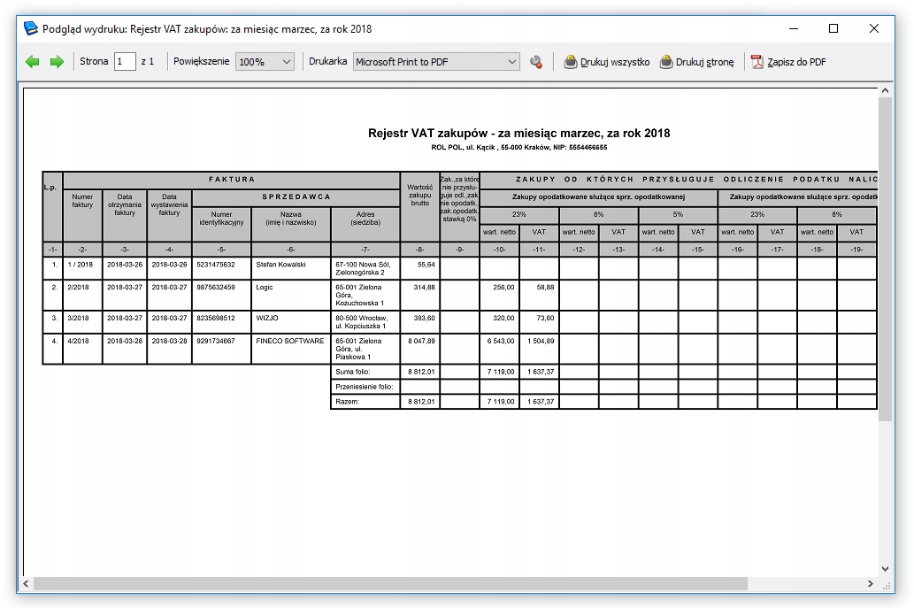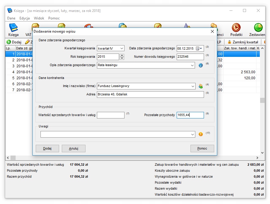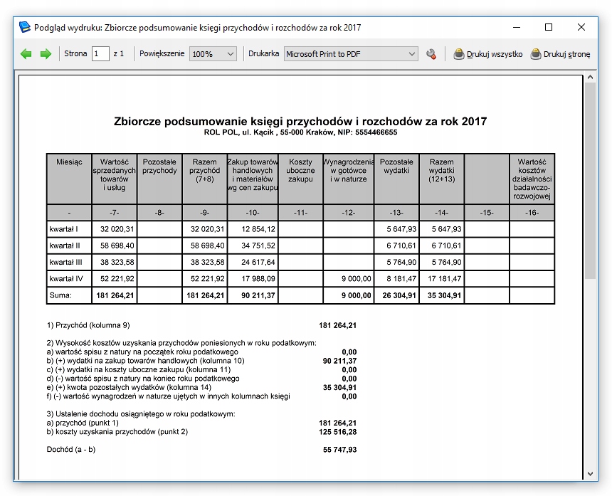 Księga to aplikacja księgowa pod Windows dla firm rozliczających podatek w oparciu o podatkową księgę przychodów i rozchodów. Przeznaczona jest dla firm jednoosobowych będących zarówno płatnikami VAT jak i zwolnionych z tego obowiązku. Ponadto umożliwia rozliczanie podatku VAT, ZUSu, kilometrówki, prowadzenie ewidencji wyposażenia oraz umożliwia wysyłkę plików JPK i e-Deklaracji.