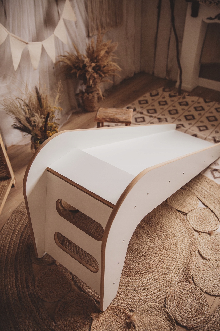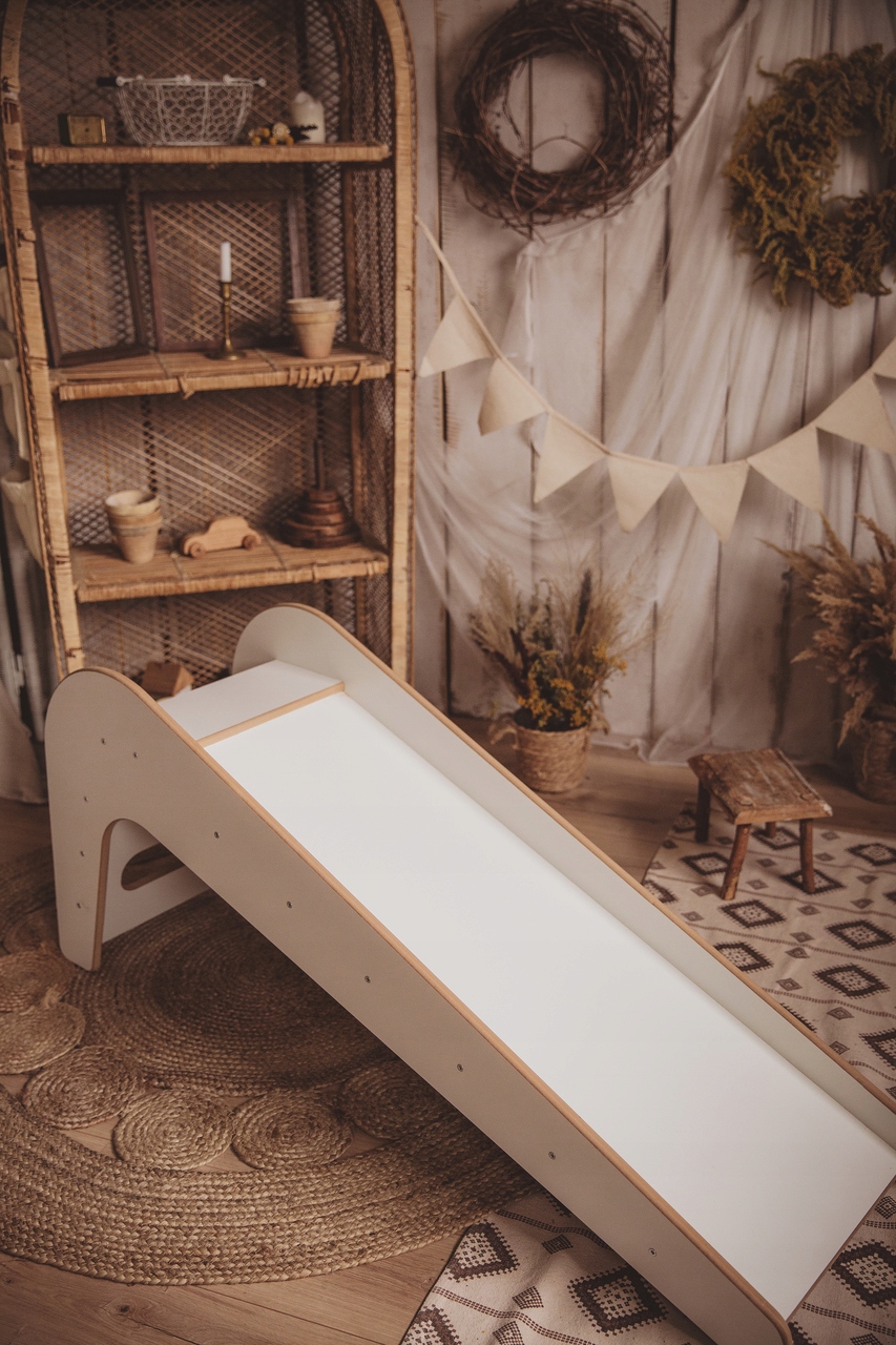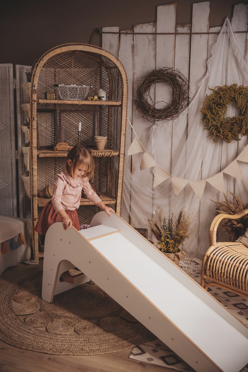 Przedstawiamy drewnianą zjeżdżalnię domową, która stanie się źródłem niezliczonej radości dla Twojego dziecka. Idealna do zabawy w pokoju dziecięcym, gwarantuje bezpieczną i ekscytującą rozrywkę. Prosty, skandynawski design sprawia, że zjeżdżalnia będzie doskonale współgrać z różnymi wnętrzami.