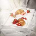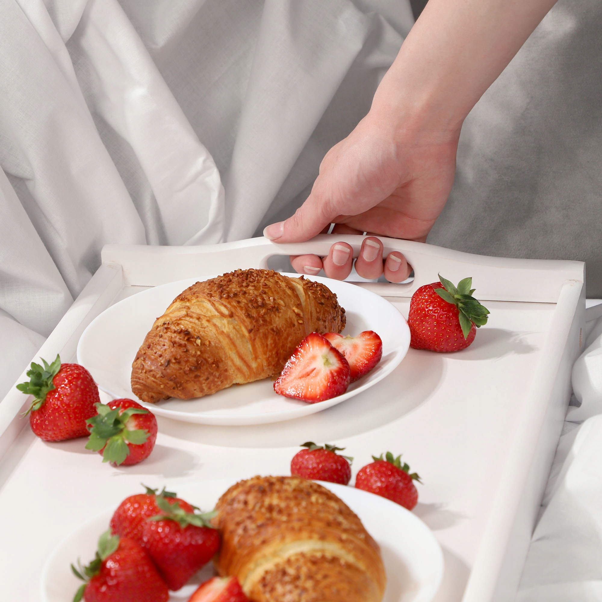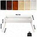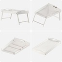 Wymiary blatu wynoszą 49,7 x 29,8 cm; co umożliwi zarówno zaserwowanie śniadania ukochanej osobie, jak i korzystanie na nim z laptopa. Pomocne w przeniesieniu będą dwa uchwyty znajdujące się po obu stronach. Warto mieć go pod ręką!