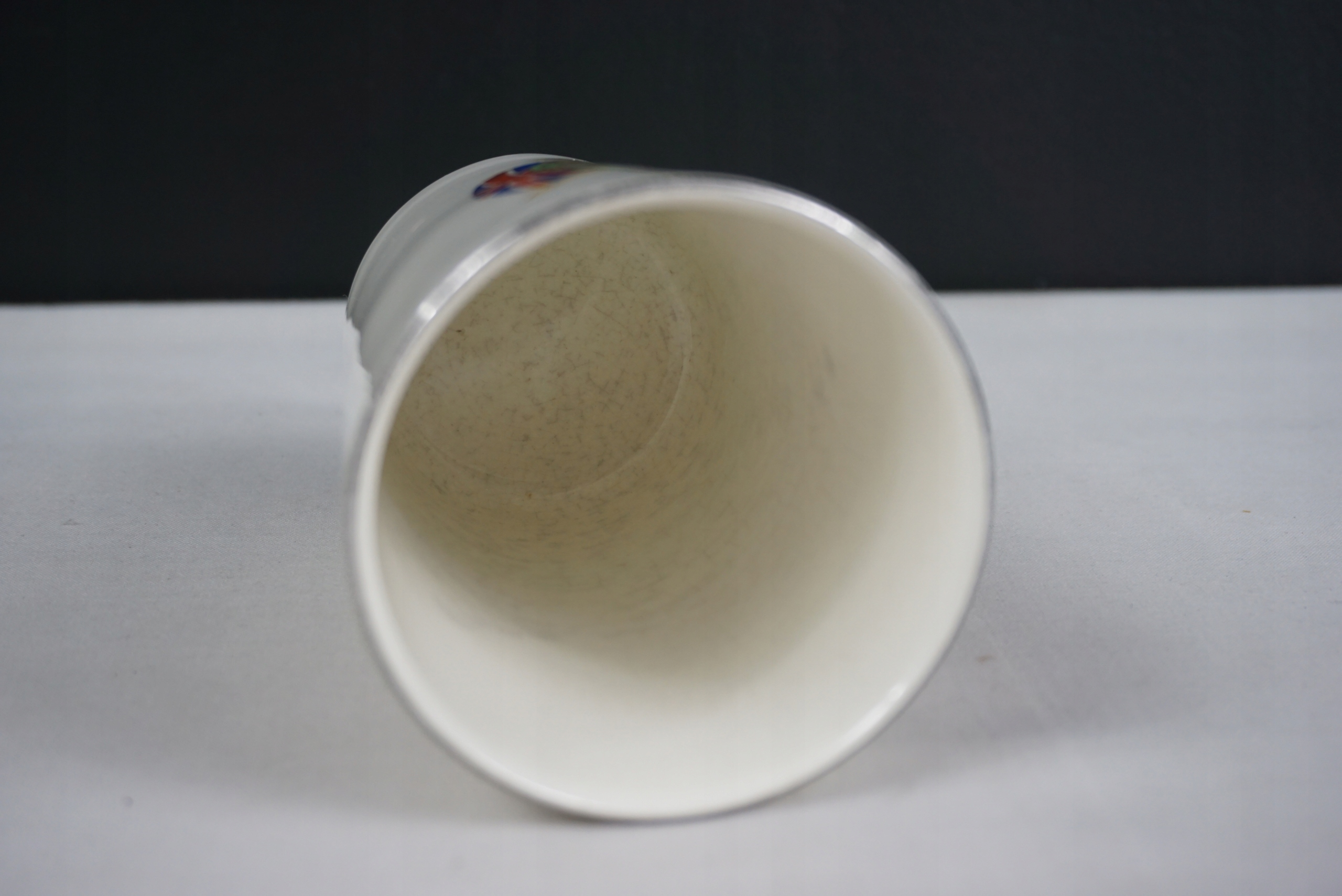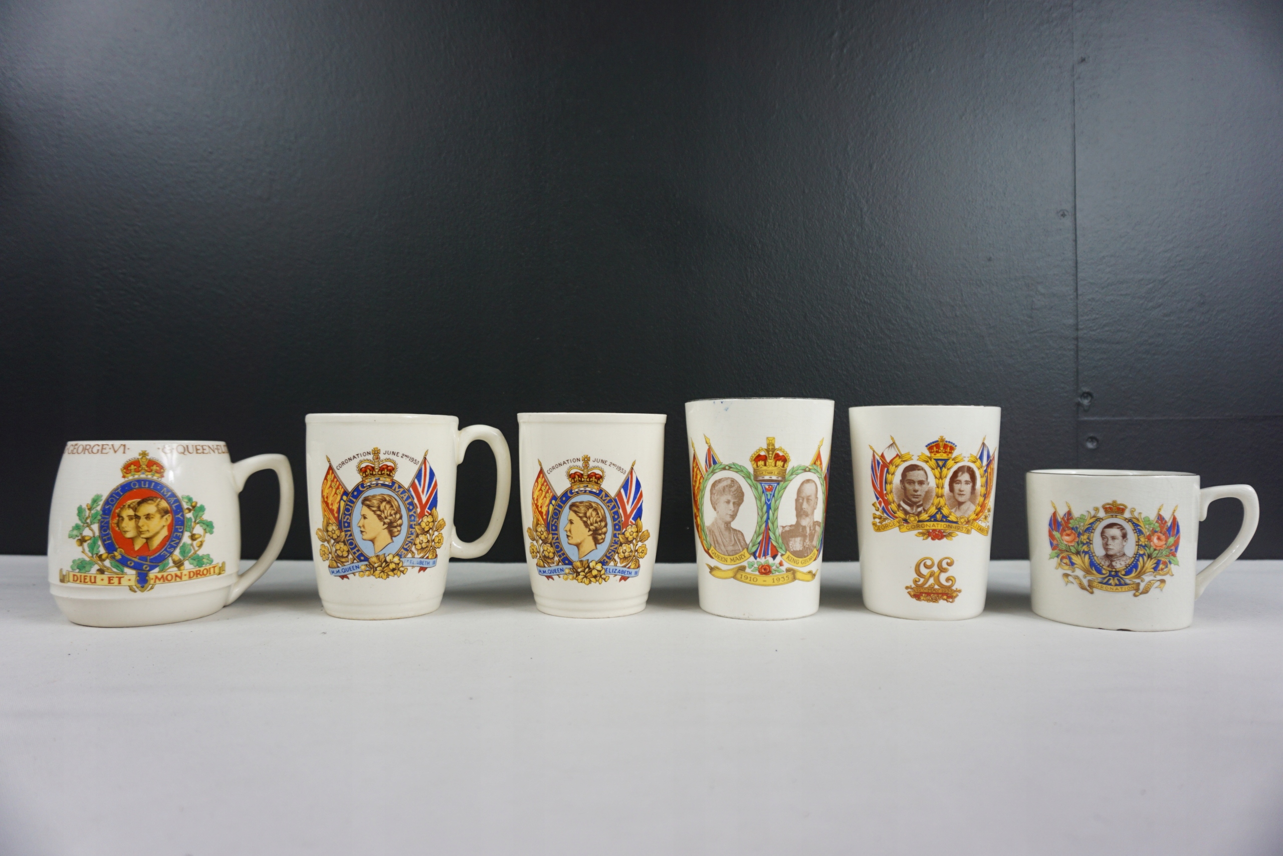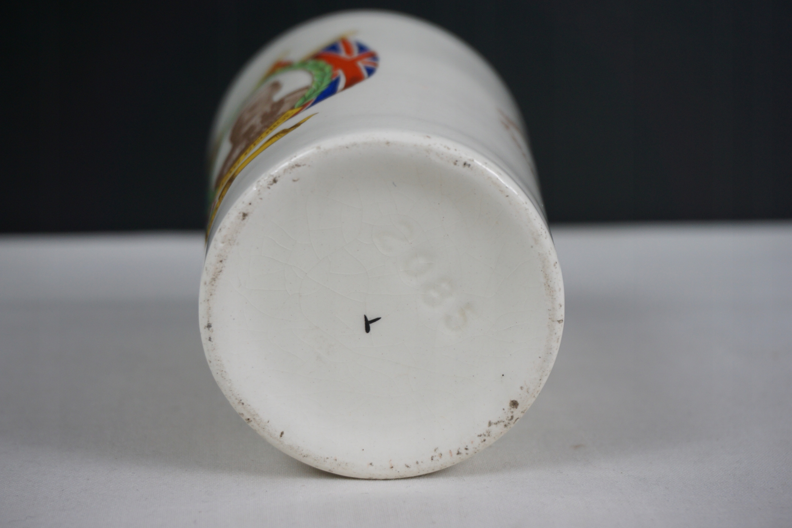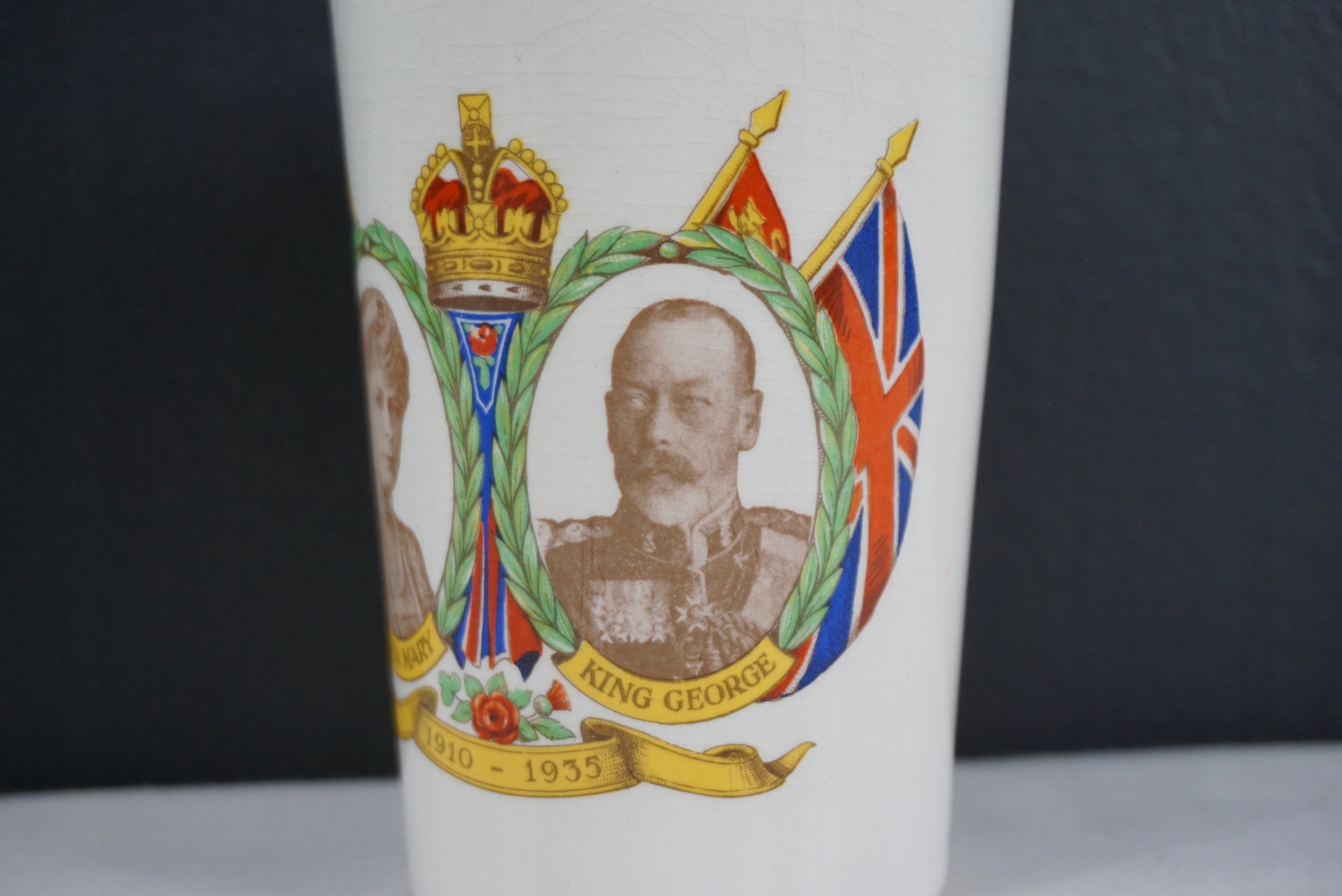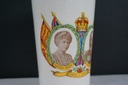 Pamiątkowy kubek - srebrny jubileusz Jerzego V oraz Marii, 1935. Przedmiot oryginalny. Używany. Stan ukazany na foto. Wysokość 11cm. Średnica 7.5cm. Wyprzedaż zbioru. Przedmioty z ostatniego foto dostępne na innych aukcjach.