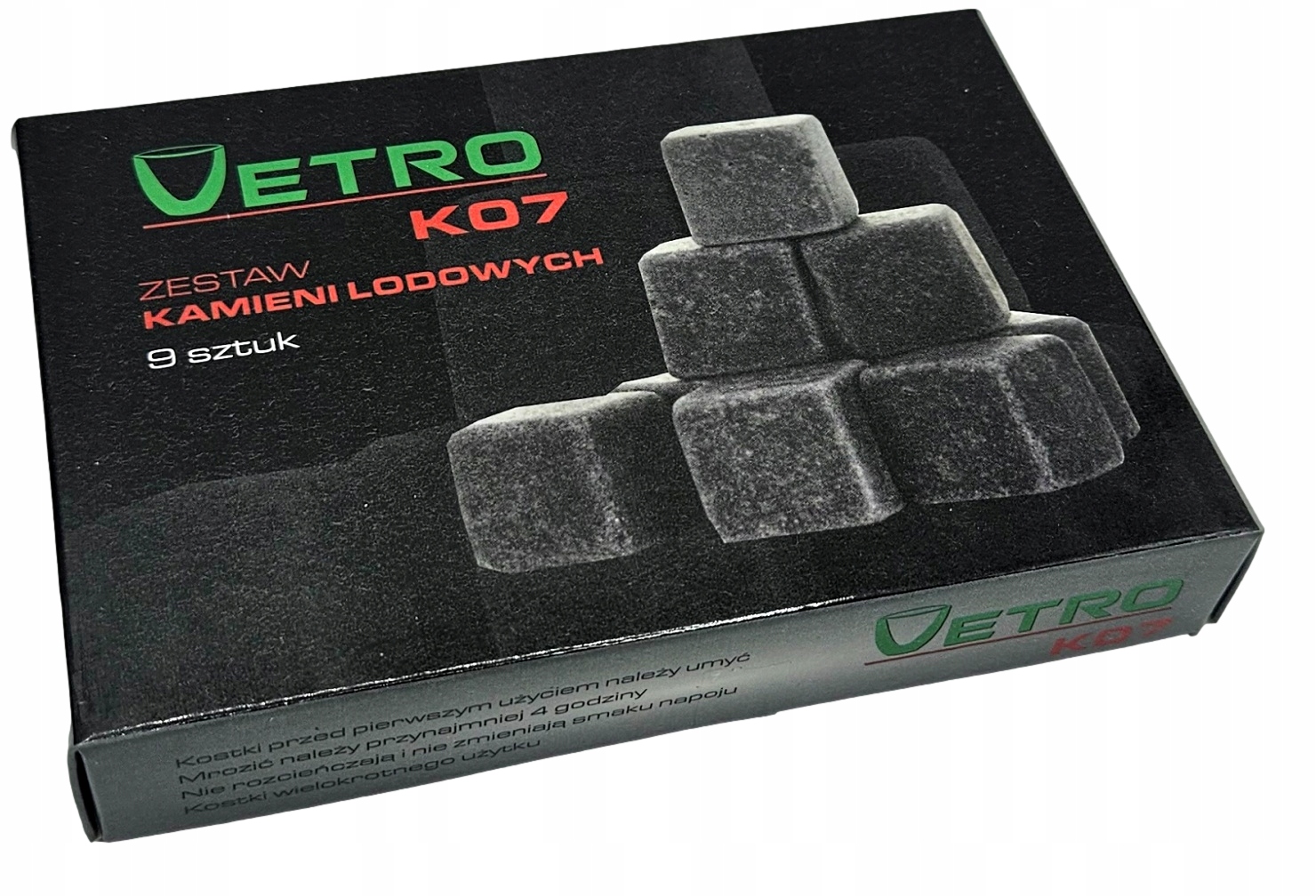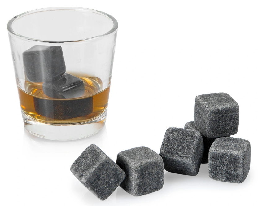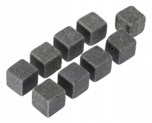 Zestaw kamiennych kostek lodu do chłodzenia drinków i napojów. W przeciwieństwie do swoich klasycznych odpowiedników, te wykonane z granitu, kostki nie zmieniają jakości napoju, a co za tym idzie pozwalają nam cieszyć się pełnią jego smaku. Są trwałe, całkowicie bezpieczne dla zdrowia i można ich używać wielokrotnie.