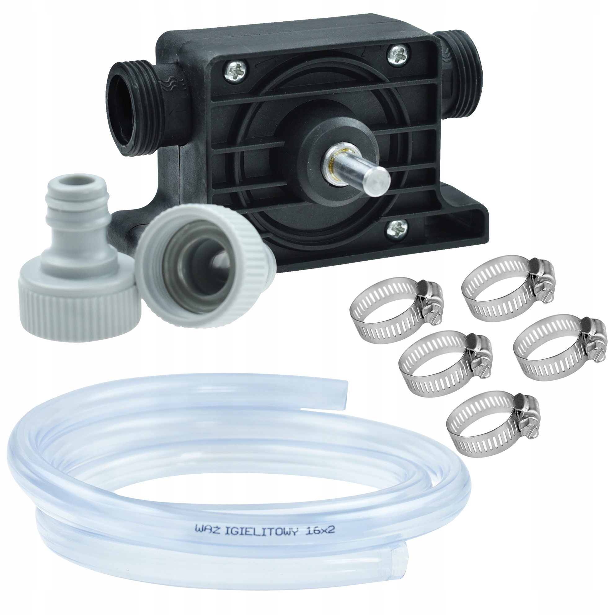 Мини - насос для дрели-Это практичный инструмент, полезный в любом домашнем хозяйстве, который позволяет перекачивать жидкости из одного места в другое с помощью дрели с держателем 8 мм. Это устройство позволит быстро и эффективно откачивать воду из различных резервуаров, например. аквариум, бочки и т.д.. Может использоваться для перекачки, например, масел, химических жидкостей и других жидкостей. Это полезно в случае необходимости быстрого и эффективного перемещения жидкости из одного места в другое, особенно в ситуациях, когда доступ к традиционным насос затруднен. Мини-насос также будет хорошо работать, когда нам нужно откачать топливо из Баку. Насос постоянно сохраняет свои права на воде. С другими жидкостями параметры и срок службы устройства может быть ограничен. Насос состоит из двух основных компонентов: корпус и Ротор. К насосу легко подсоединить шланги с обеих сторон, например, с помощью быстроразъемное соединение или надавливание на соединение.
