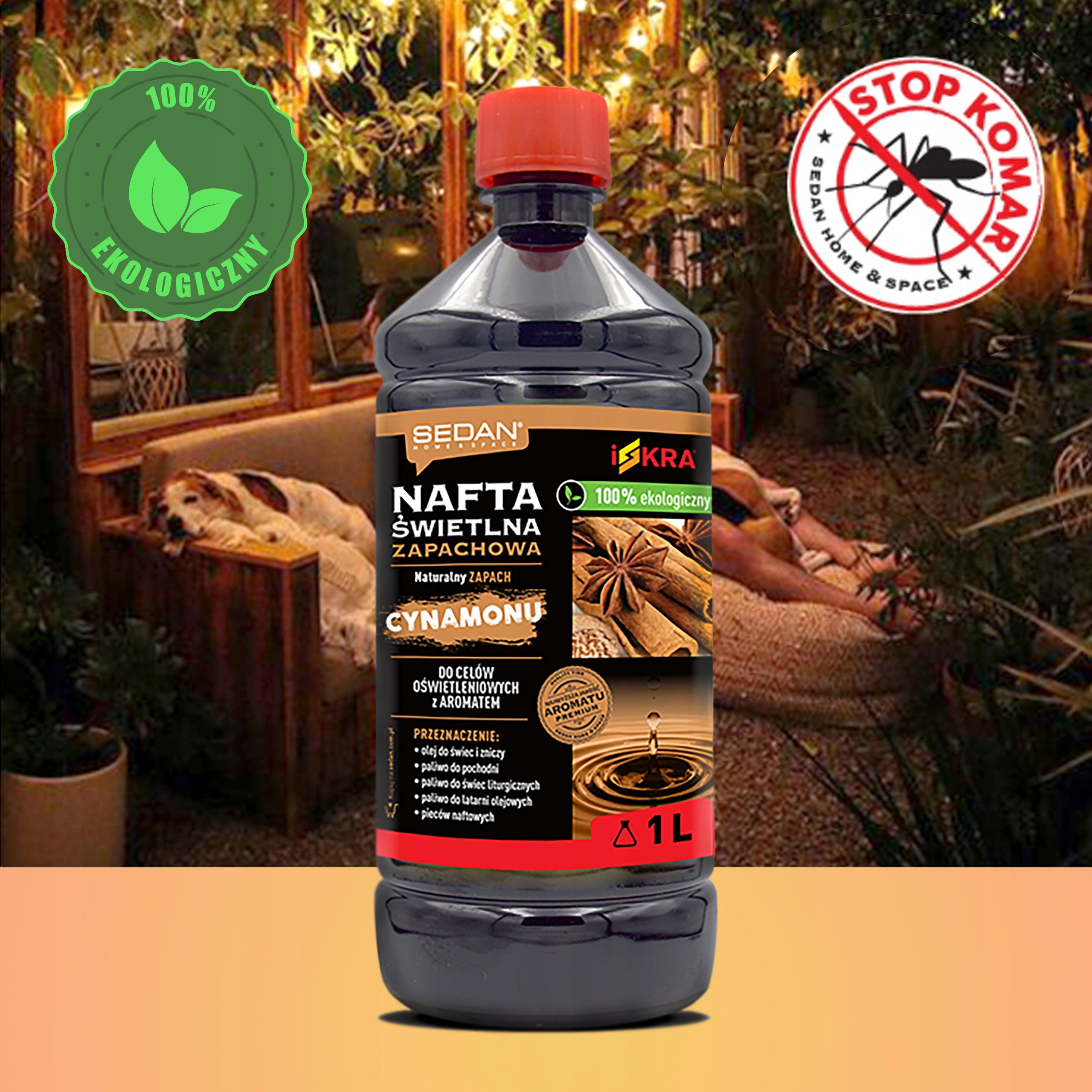 Oleje zapachowe ISKRA do lamp naftowych, oliwnych oraz pochodni z dodatkiem najwyższej jakości perfumeryjnego aromatu cynamonu, lawendy, sosny czy róży sprawia, że spalający się olej wydziela przyjemny, zapach która pobudza, odświeża i poprawia samopoczucie. Nafta świetlna spala się łagodnym i niekopcącym płomieniem, a jego wysoka kaloryczność sprawia, że płonie przez długi czas.