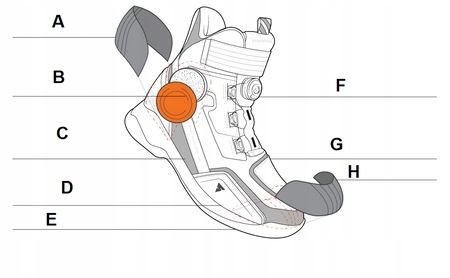 E - podeszwa wykonana z połączenia gumy i pianki EVA