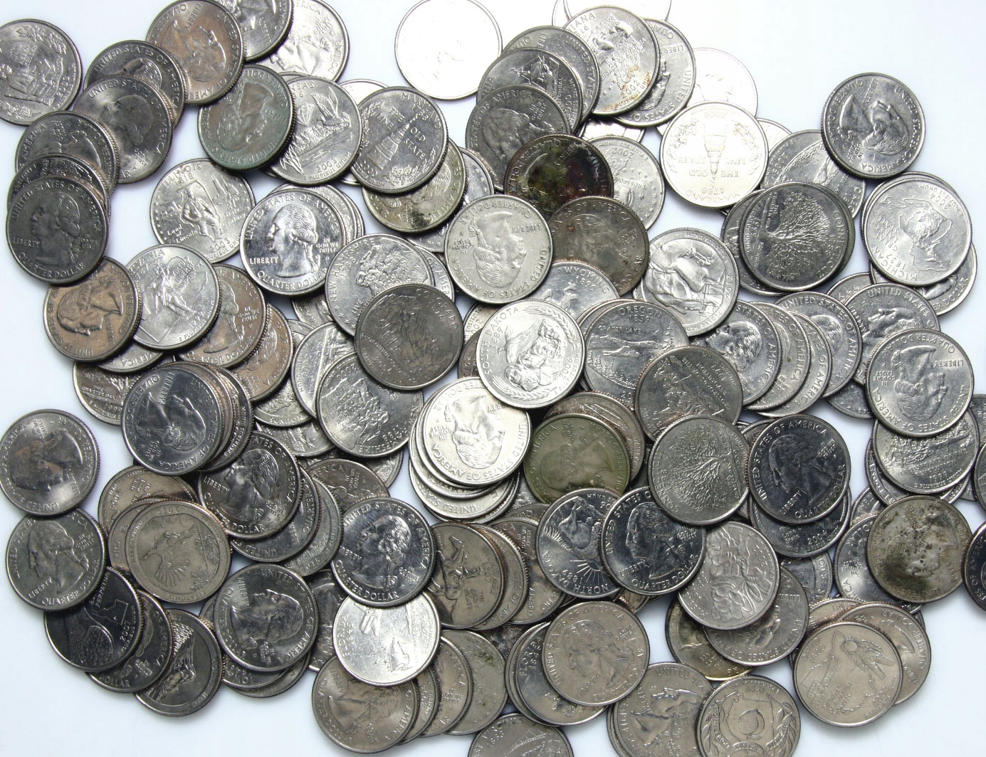Przedmiotem aukcji jest zestaw 50 sztuk monet USA monety 25 Centów Cents OKOLICZNOŚCIOWE - STANOWE, PARKI - mix. Roczniki, typy i mennice pakowane bez wybierania zatem może się zdarzyć więcej sztuk którejś z monet lub mennic przy braku innych. Możliwe powtórki. Stan obiegowy. ORYGINALNE !