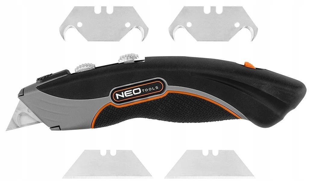 Nóż wyposażony w podwójną komorę ostrzy oraz magazynek na ostrza zapasowe. Metalowy korpus ze stopu cynku gwarantuje trwałość narzędzia, a uchwyt pokryty ABS+TPR zapewnia antypoślizgowe właściwości. Metalowe prowadnice pozwalają na szybkie i bezproblemowe wybranie ostrza, a blokada ostrza umożliwia ich stabilizację. Nóż jest idealny do cięcia wykładziny, przecinania taśmy i pasków na paczkach. Sprawdzi się w pracy magazyniera, budowlańca oraz wykończeniowca. W zestawie znajdują się 6 ostrzy, w tym 4 dodatkowe. Kup teraz nóż NEO, który z pewnością zaspokoi Twoje potrzeby w pracy.