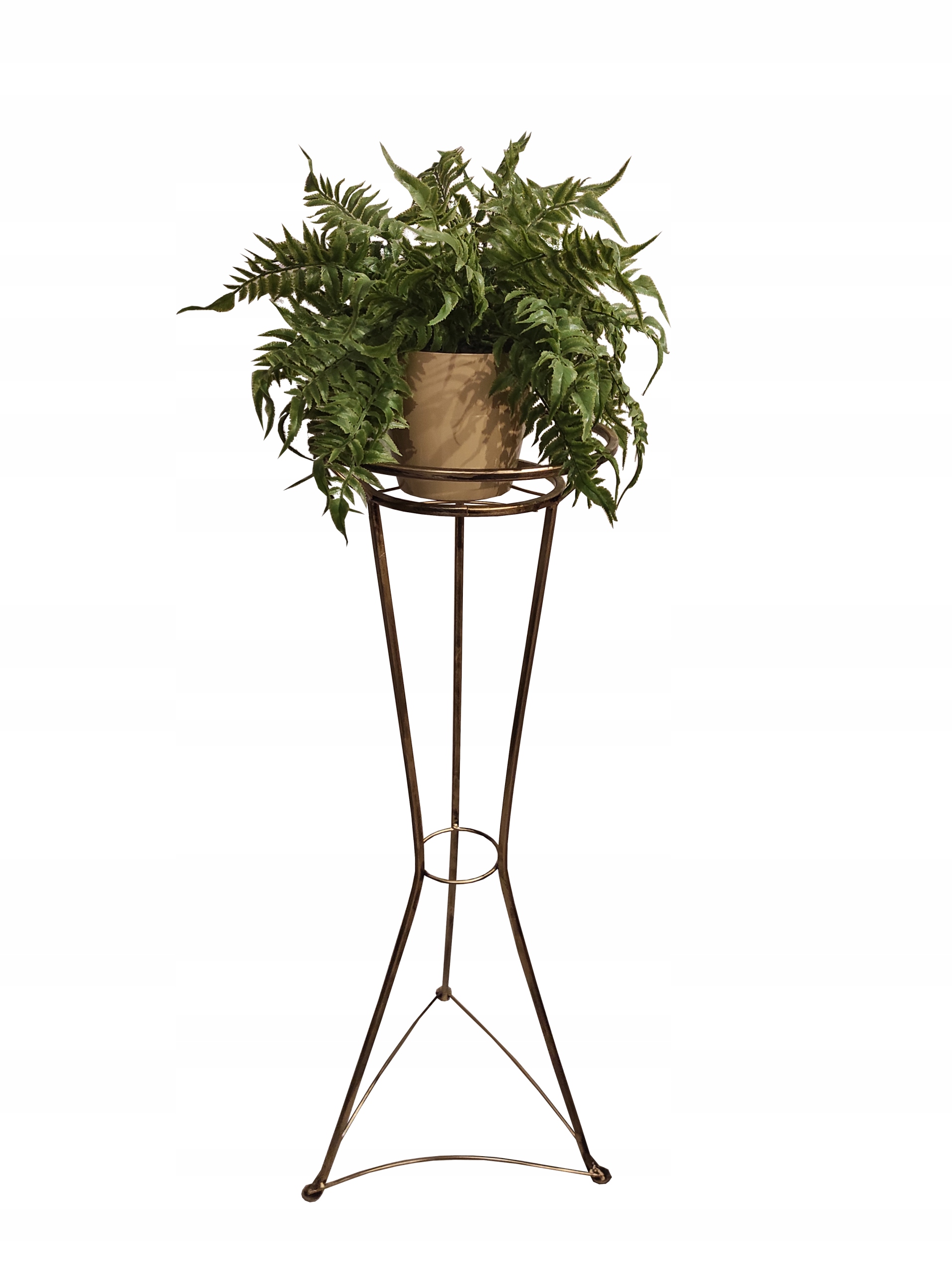 Oferujemy do sprzedaży kwietnik stojący wykonany z metalu. Dostępny w modnym i zawsze na czasie kolorze czarnym patynowanym na złoto. Kwietnik nie posiada żadnych ozdób dlatego idealnie wpasuje się do każdego wystroju. Doskonały na paprocie i kwiaty wiszące ze względu na swoją wysokość.