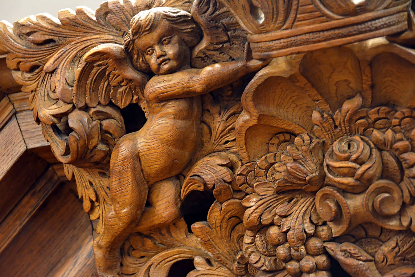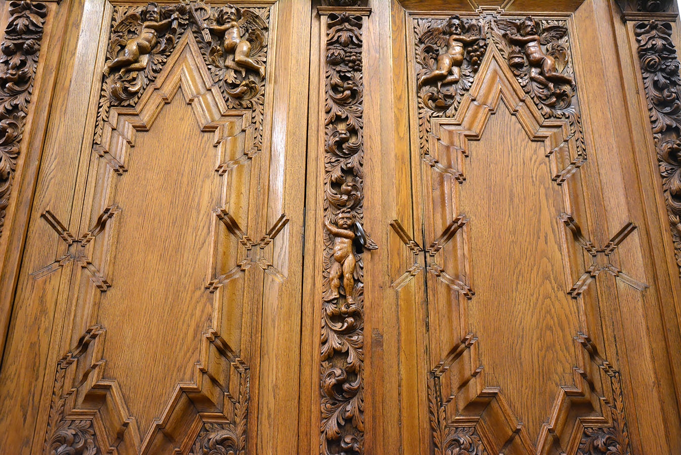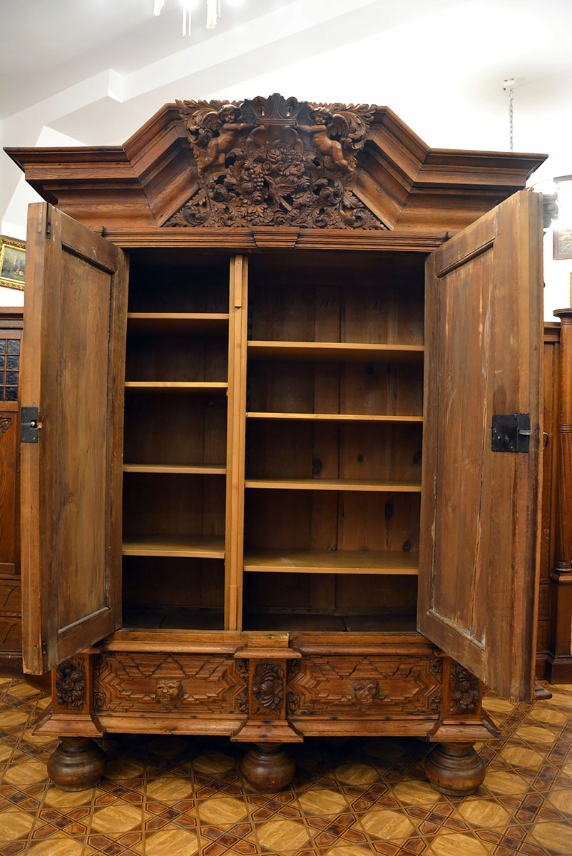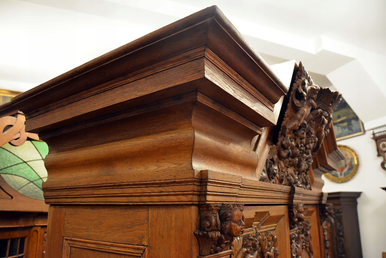 Unikatową szafę neobarokową w typie gdańskim. Wyjątkowo bogato rzeźbioną datowaną na XIX wiek.