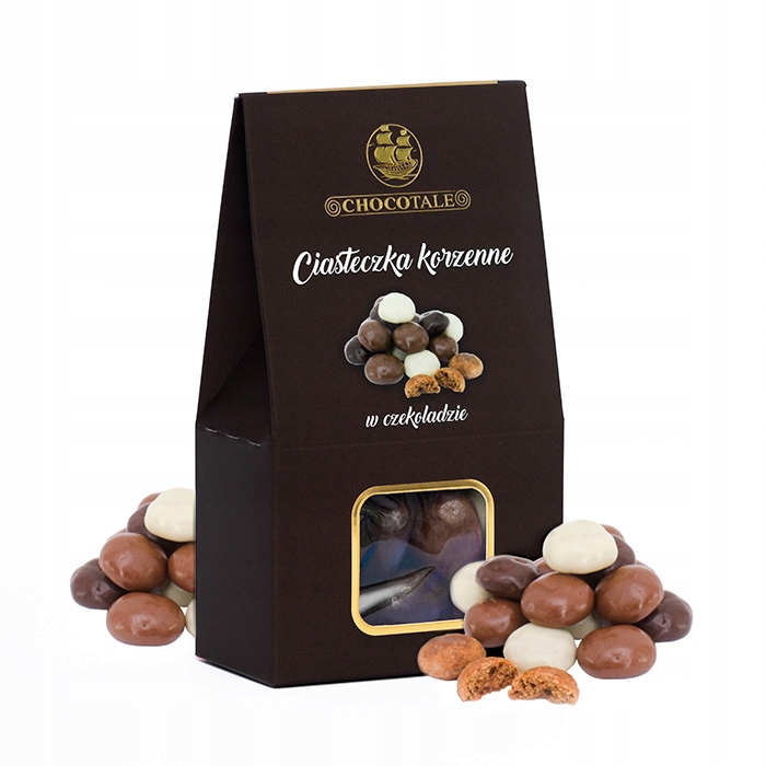 Ciasteczka korzenne w czekoladzie od Chocotale to doskonały dodatek do porannej kawy i herbaty. Te urocze słodkości zapakowane są w piękny, brązowy kartonik z matową powłoką, która sprawia, że słodycze wyglądają luksusowo i nadają się na prezent.