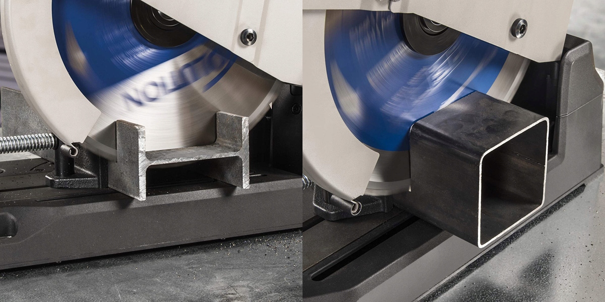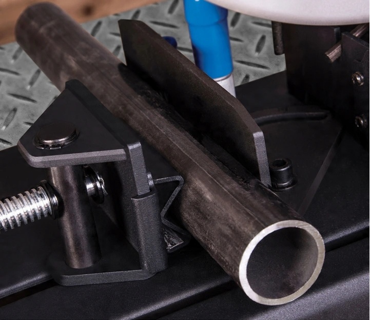 Silnik o dużej mocy 2200W jest w stanie sprostać nawet najbardziej wymagającym pracom. Urządzenie sprawdzi się w firmach zajmujących się produkcją konstrukcji stalowych, gdzie docinanie pod kątem jest ważne. Skrętne imadło do 45 stopni gwarantuje, że element możemy przecinać pod dowolnym kątem. Regulacja i ustawianie jest bardzo proste - wystarczy odkręcić jedną śrubę.
