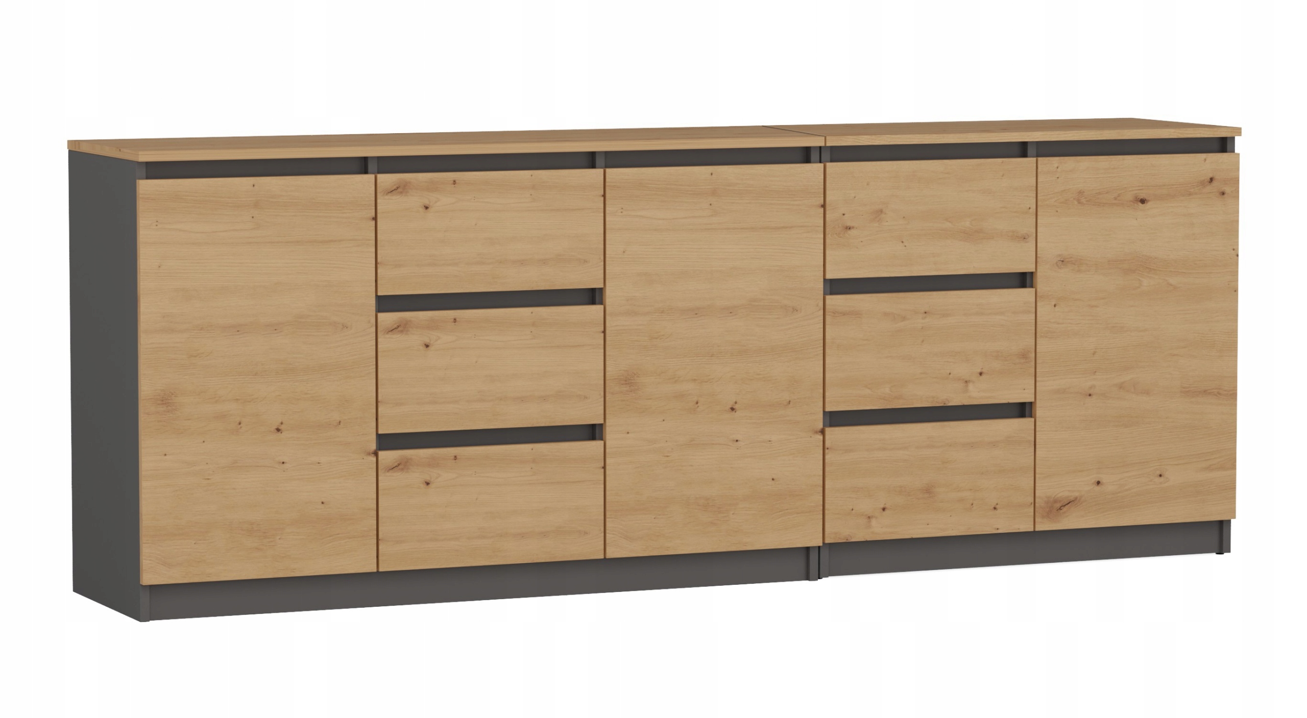 Nowoczesna komoda COSTA to dwie niezależne komody 1D3S o szerokości 80 cm oraz 2D3S o szerokości 120 cm połączone w funkcjonalny zestaw. Costa to praktyczny i pakowny mebel, który urządzi wnętrze Twojej sypialni, salonu lub pokoju dziecka.