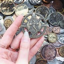 W tej kategorii znajdziesz monety metalowe związane z konkretnymi motywami lub tytułami gier. Zestawy zawierają produkty imitujące złoto (pokryte warstwą mosiądzu), srebro (warstwą niklu) lub miedź (warstwą miedzi). Ich wzory nawiązują do gier postapo, fantasy, steampunkowych, utrzymanych w klimacie średniowiecza, starożytności, kosmosu, oraz powieści Lovecrafta.