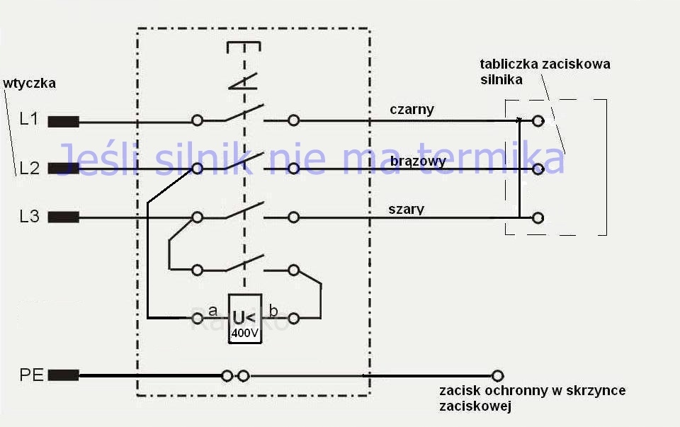 Wyłącznik elektromagnetyczny trójfazowy, stosowany w silnikach elektrycznych. Wyłącznik posiada wbudowalny przekaźnik który wyłącza silnik w przypadku braku prądu oraz zabezpiecza przed samoczynnym załączeniem silnika.