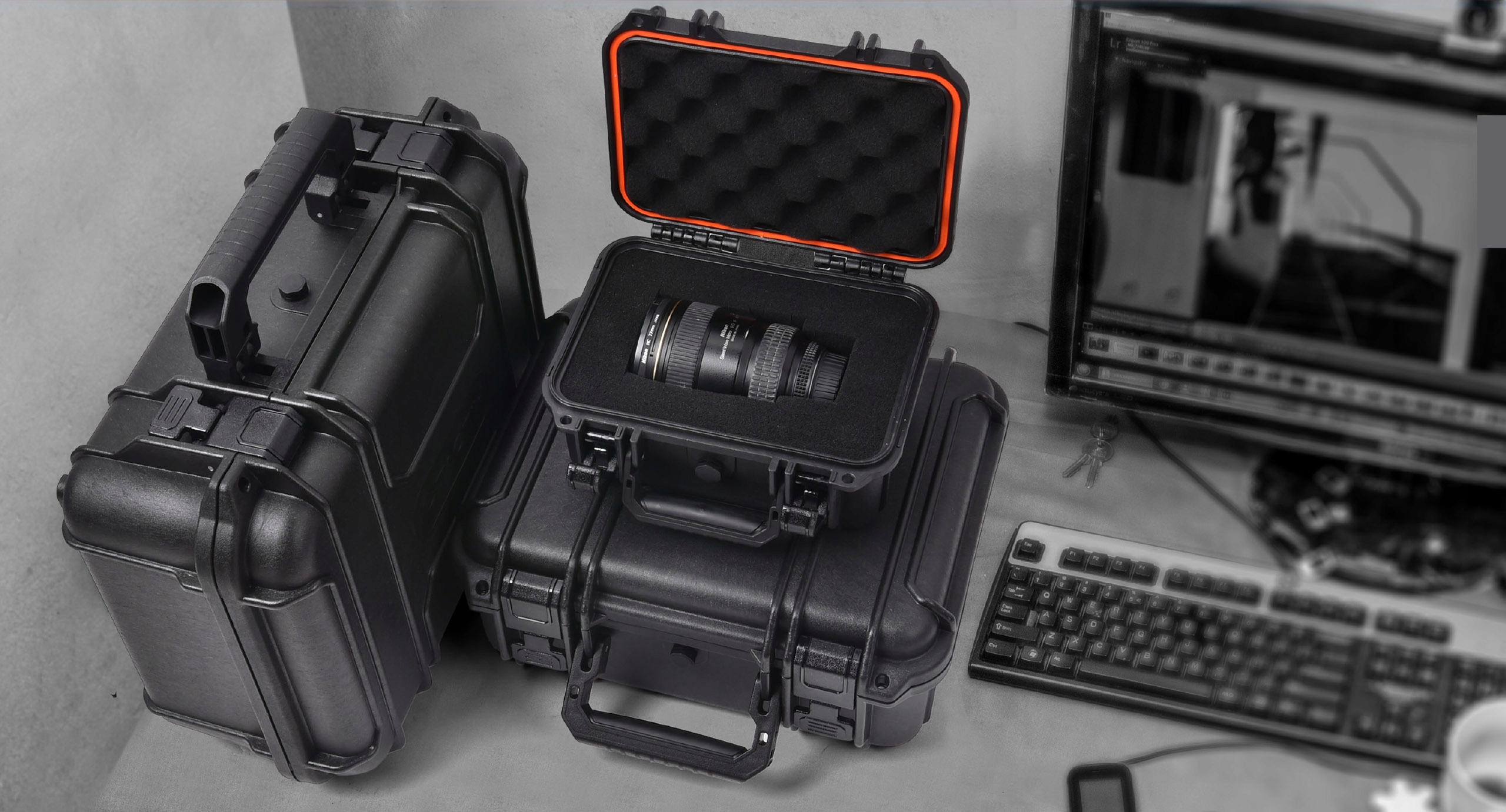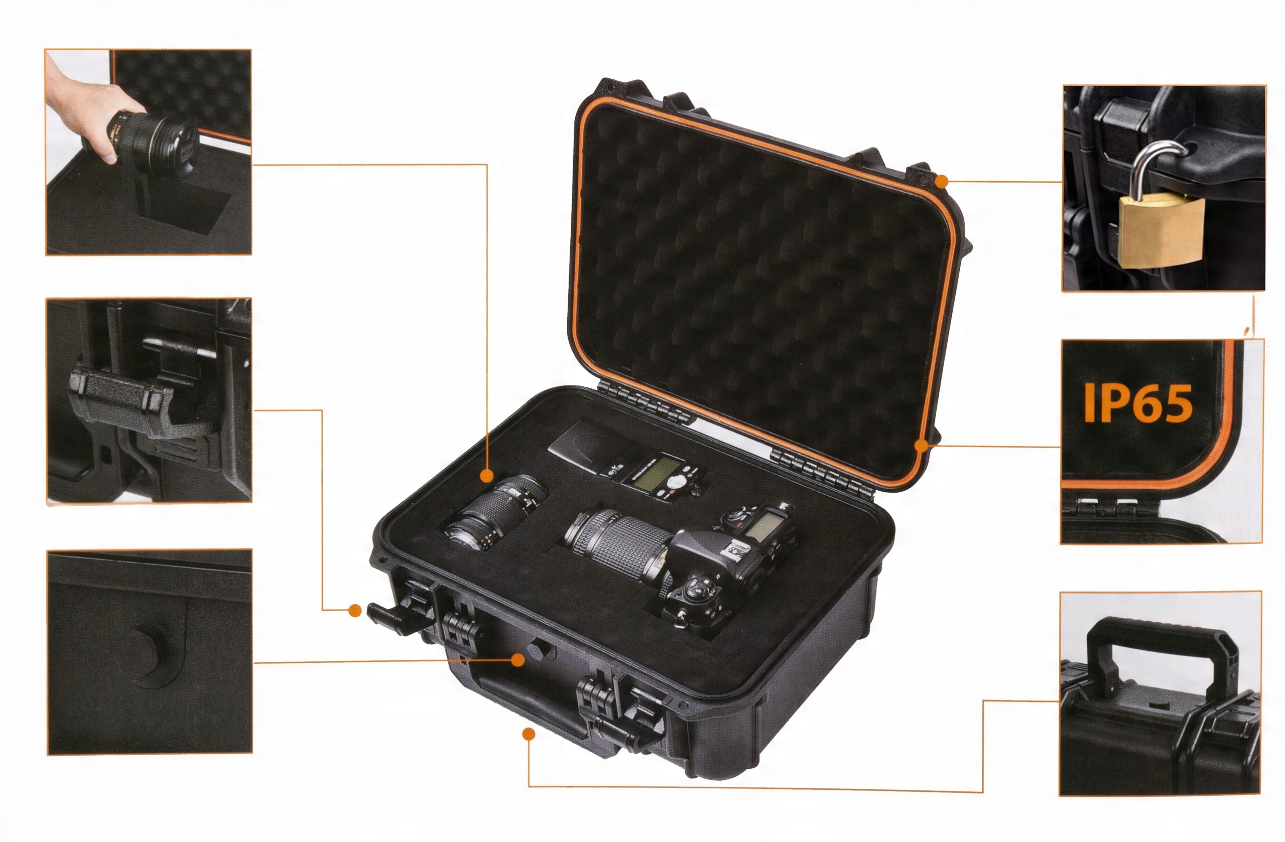 Idealne rozwiązanie do transportu i przechowywania urządzeń elektronicznych, fotograficznych czy optycznych. Posiada skuteczny system uszczelniający zgodny z normą szczelności IP65, wzbogacony o zawór dekompresyjny do wyrównywania ciśnień np. podczas transportu lotniczego.