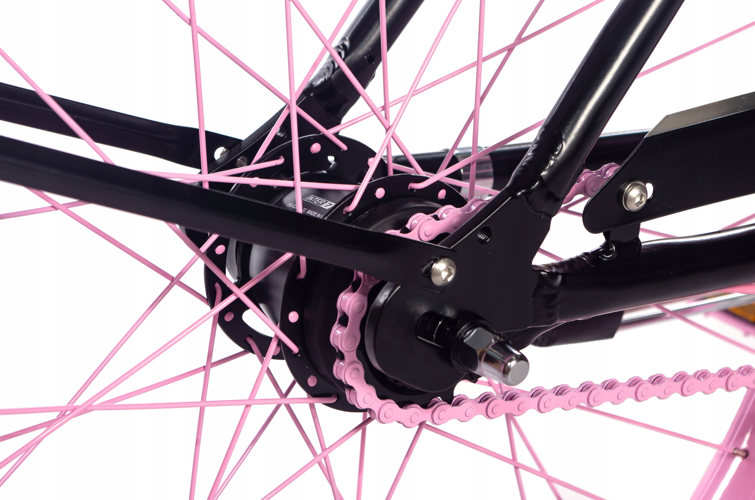 Model Rider GO GIRL BLACK- nowa, kobieca odsłona Ridera. Idealna, opływowa linia ramy ubrana w urocze, damskie kolory czyni z Ridera GO GIRL idealnego kompana do tych mniejszych i większych podróży. Wyprostowana postawa ciała i podwójnie sprężynowane, duże, miękkie siodło sprawią, że każdy kolejny metr, przejechany na Riderze GO GIRL, będzie niezwykłą przyjemnością. Optymalnie szerokie opony pomogą pokonać nierówności a dzięki 3 lub 7 biegowej przekładni, pokonasz bez problemu miejskie górki.