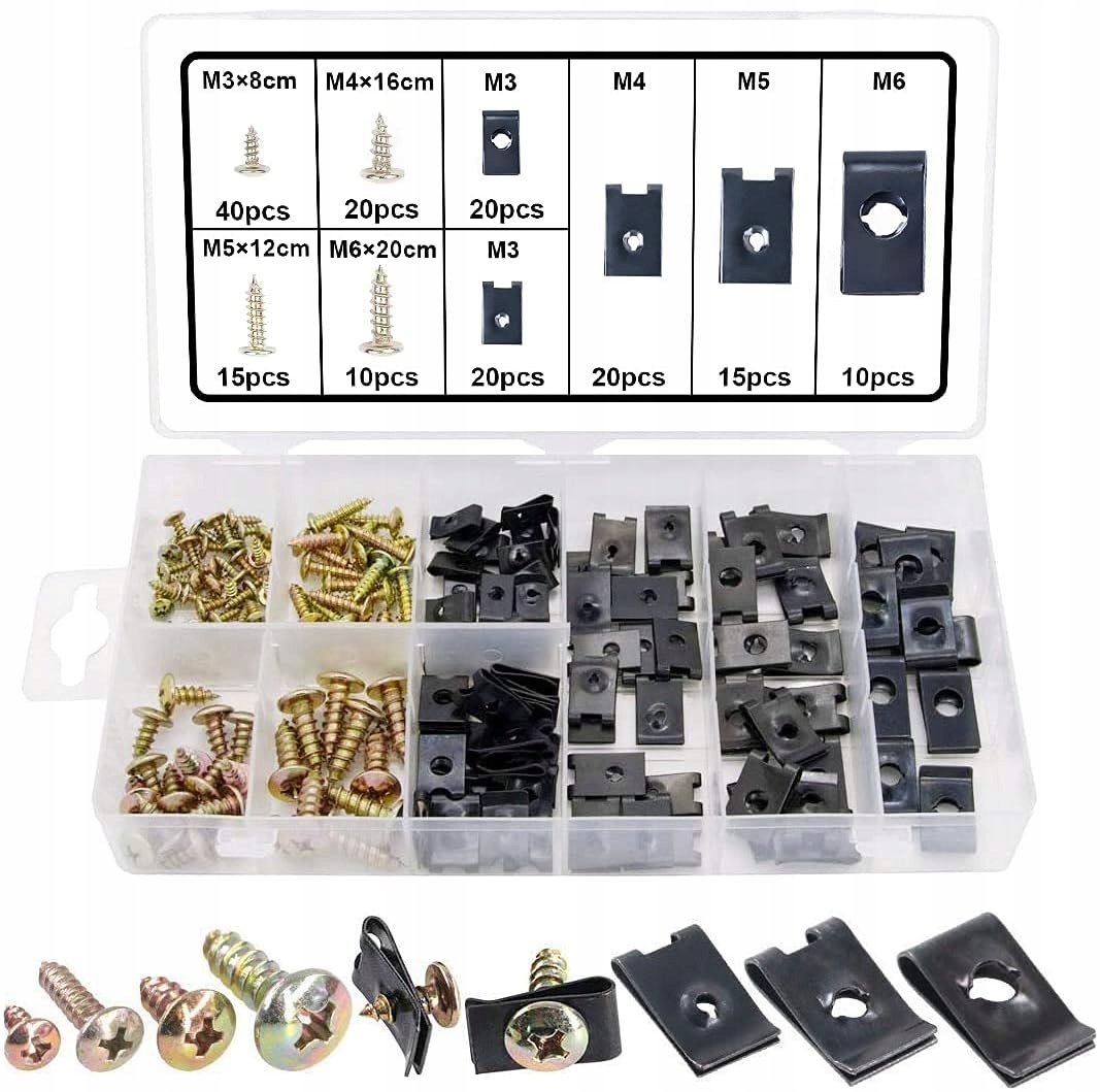 ⭕Nasz zestaw blaszek i śrubek samochodowych składający się z 170 elementów to niezastąpione narzędzie, które pozwoli Ci na dokonywanie napraw, montażu i utrzymanie Twojego samochodu w doskonałym stanie.