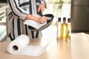 Papierowy ręcznik to obecnie bardzo ważny element wyposażenia. Dzięki niemu można higienicznie odkazić różne powierzchnie płynem do dezynfekcji (brak w zestawie) w publicznym miejscu i zutylizować go, by nie przenosić patogenów.