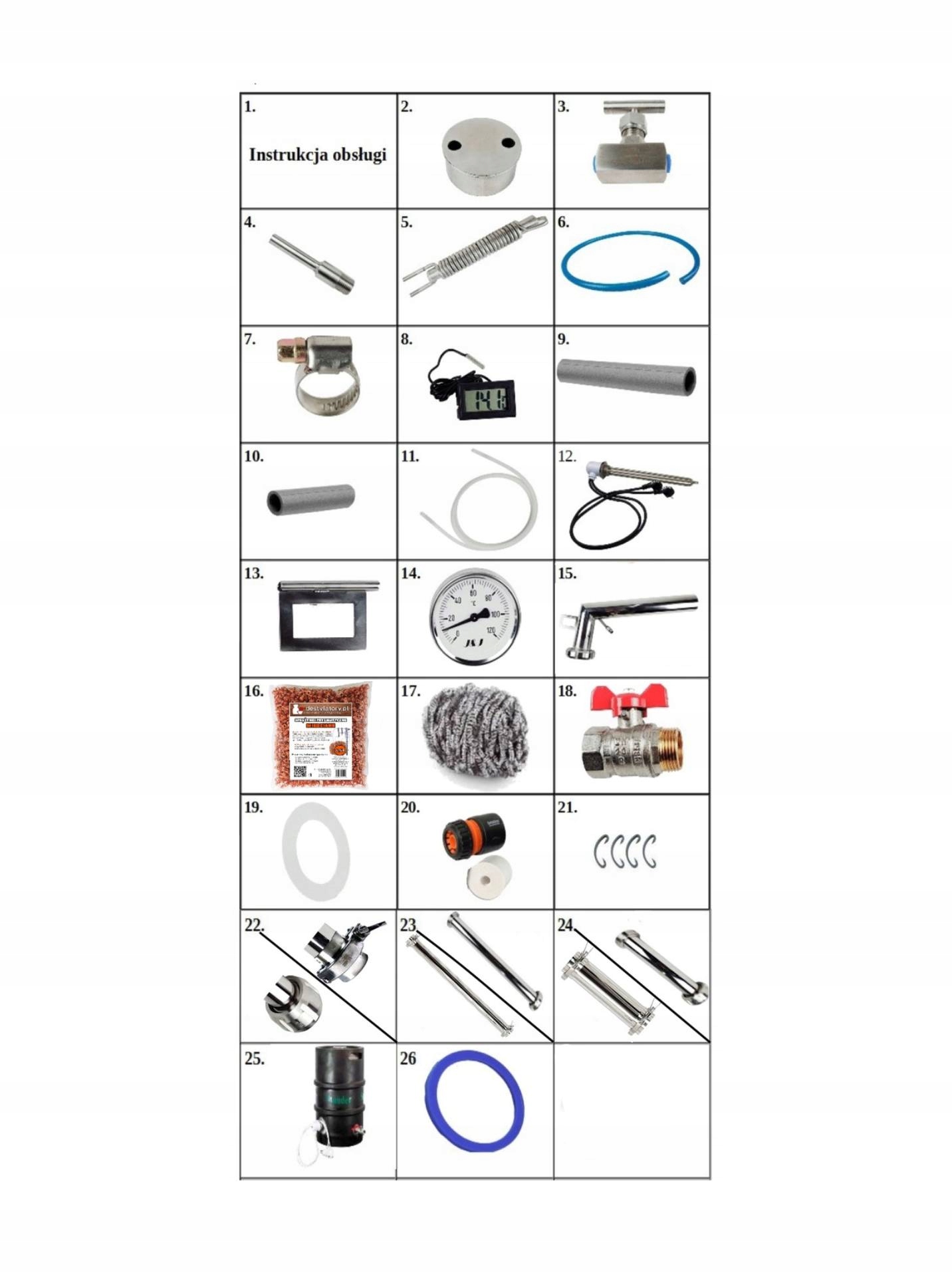 W SKŁAD ZESTAWU WCHODZI ZAŚLEPIONE WYJŚCIE OVM 1/2'' ,Z ZAWOREM KWASOODPORNYM 1/2'' I CHŁODNICĄ LIBIGĄ . CHŁODNICY LIBIGI TZW ODBIÓR BOCZNY Z TEJ CHŁODNICZKI MOŻLIWY ODBIÓR Z PRZED OSTATNIEJ PÓŁKI TEORETYCZNEJ DESTYLACJI . LIBIGA UZBROJONA JEST W ZESTAW WĘŻY ODPŁYW I DOPŁYW WODY, ZAKOŃCZONA SZYBKO ZŁĄCZKĄ 1/2''. WYMIARY CHŁODNICY 63 CM .