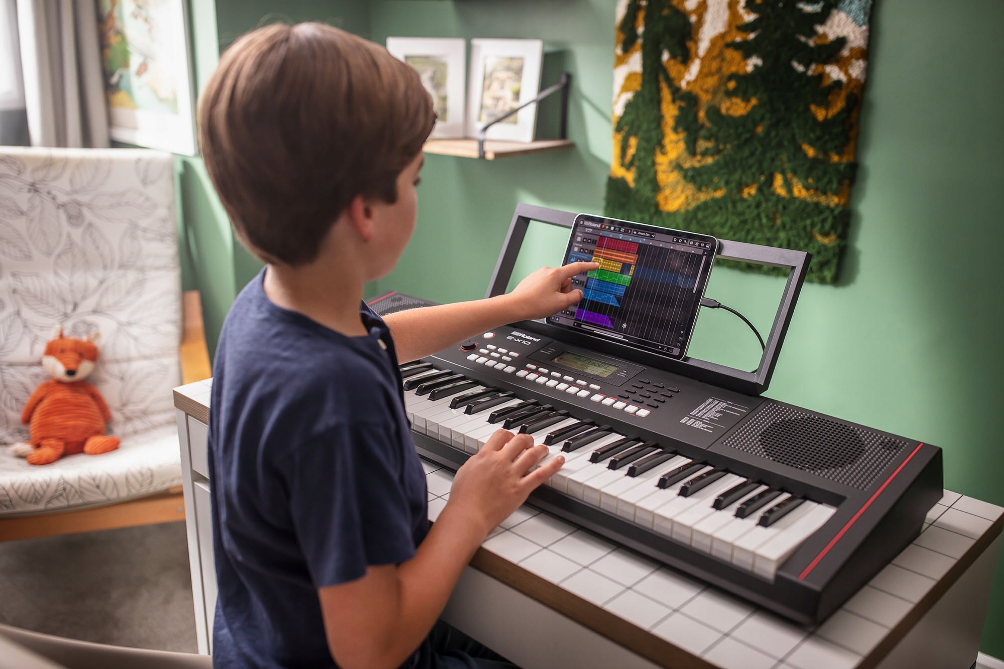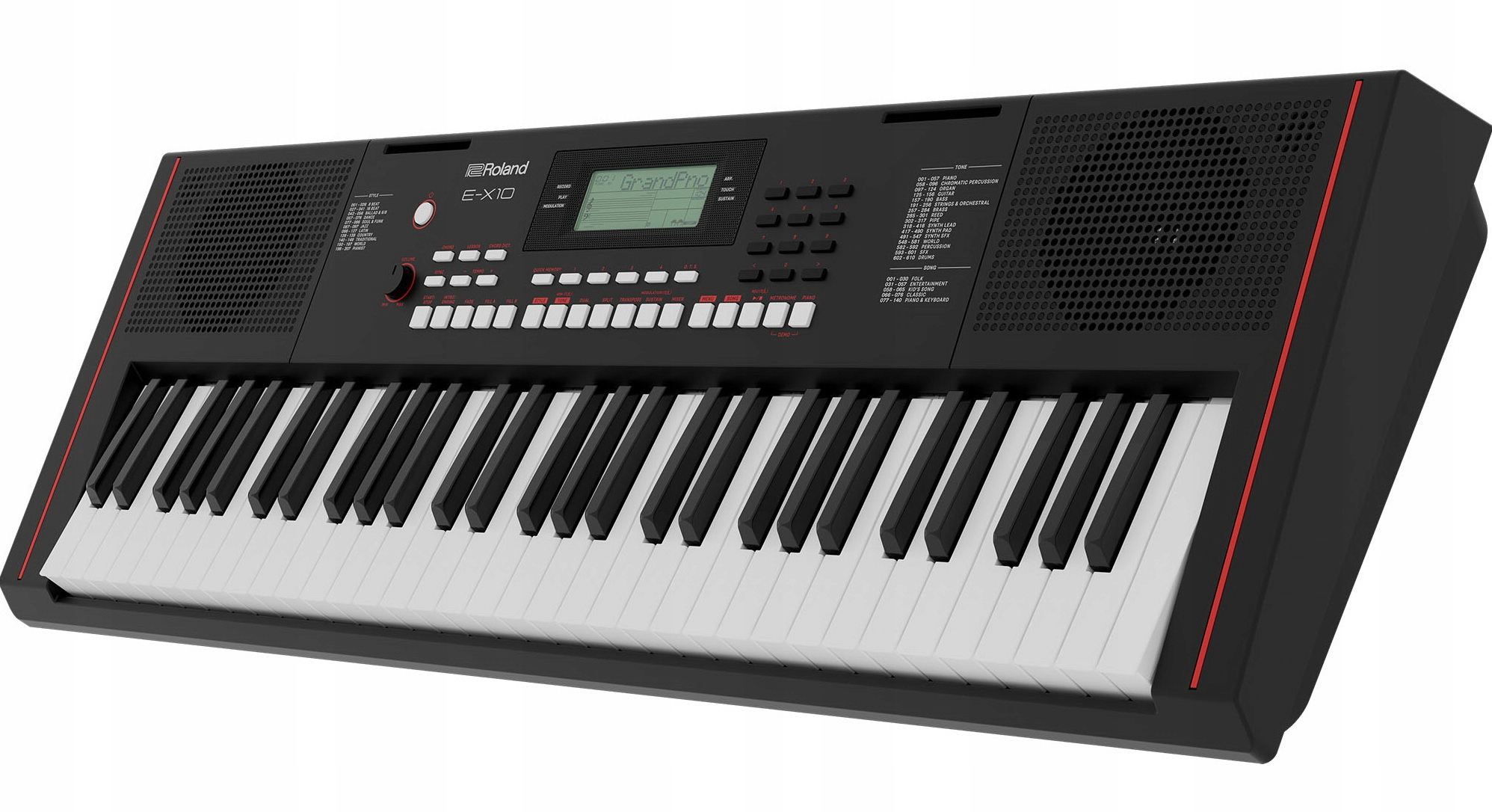 Rozpocznij swoją muzyczną podróż z E-X10, inspirującą klawiaturą dla początkujących z wysokiej jakości funkcjami pochodzącymi z profesjonalnych instrumentów Roland. Ucz się, korzystając z ekspresyjnych pianin akustycznych i setek innych brzmień. Zarządzaj pełnym zespołem z automatycznym akompaniamentem i podłącz mikrofon, aby śpiewać razem. Nagrywaj grę na klawiaturze, aby sprawdzić swoje postępy. Graj w dowolnym miejscu dzięki eleganckiej, przenośnej konstrukcji, wbudowanemu systemowi głośników stereo i zasilania bateryjnego.