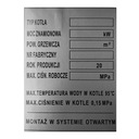Do oznaczenia kotłów, naklejka posiada puste pola w celu wypełnienia ich pisakiem permanentnym parametrami kotła.