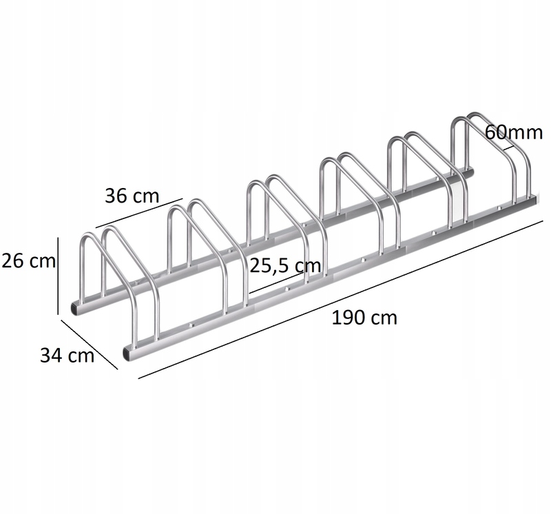 Jest łatwy w montażu dzięki nawierconym otworom i dostarczonym śrubom. Możliwy jest montaż zarówno do podłogi, jak i ścienny. Stojak na rowery dedykowany jest do rowerów o szerokości opon do 60 mm.