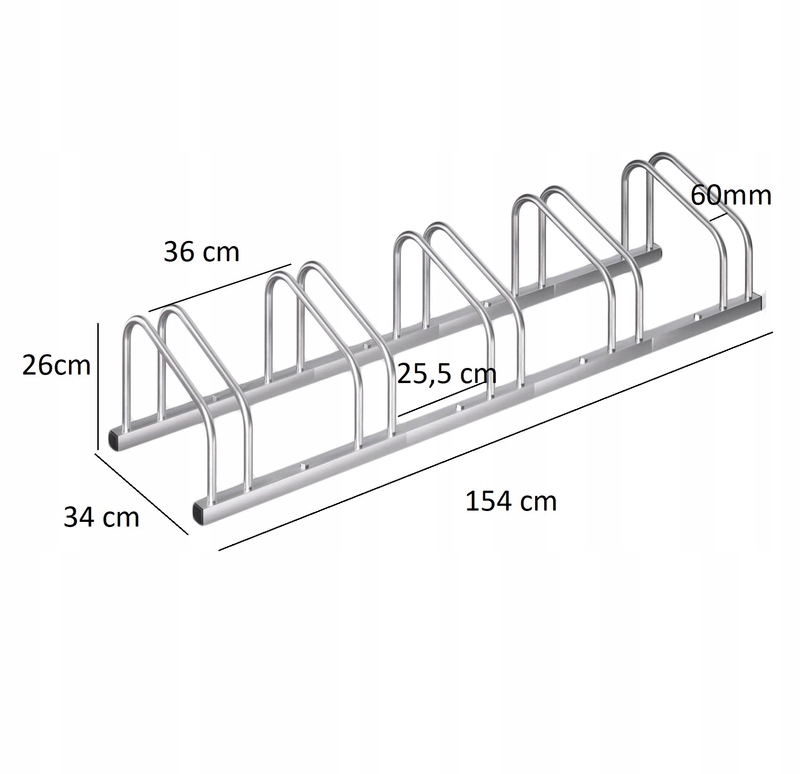 Jest łatwy w montażu dzięki nawierconym otworom i dostarczonym śrubom. Możliwy jest montaż zarówno do podłogi, jak i ścienny. Stojak na rowery dedykowany jest do rowerów o szerokości opon do 60 mm.