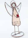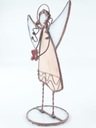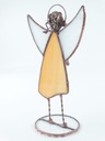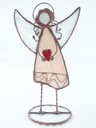 Figurka aniołka wykonana została w technice Tiffany'ego z wysokiej jakości szkła witrażowego, w tym szkła Spectrum. Każdy kawałek takiego szkła posiada niepowtarzalną kolorystykę oraz fakturę. Kolory szkła: wanilia/łososiowy nieprzezierny, biały częściowo przezierny, biały przezierny (młotkowany) i nieprzezierny, czerwony nieprzezierny. Aniołek patynowany na kolor miedzi. Wymiary aniołka (szer. x wys.): 10cm x 17,5cm. Średnica podstawy ok. 7cm.