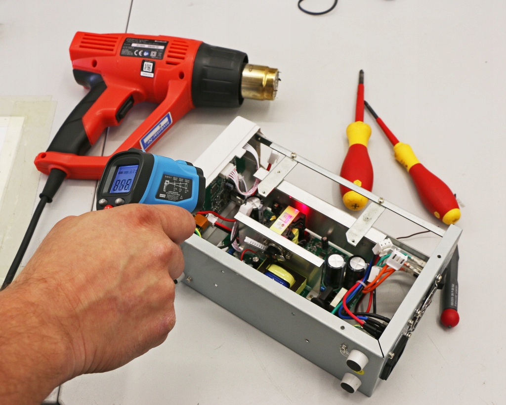 PeakTech 4940 to poręczny termometr na podczerwień o doskonałym stosunku ceny do wydajności, który wykorzystuje laser do szybkiego, łatwego i dokładnego pomiaru temperatury powierzchni. Laser może być skierowany na gorące powierzchnie lub poruszające się obiekty, co pozwala operatorowi na łatwe rejestrowanie mierzonych temperatur z bezpiecznej odległości. Urządzenie jest uruchamiane spustem i błyskawicznie dokonuje precyzyjnego (rozdzielczość 0,1°C) pomiaru temperatury. Trzy przyciski funkcyjne obok ekranu przełączają między °C i °F, aktywują laser i podświetlenie wyświetlacza. Narzędzie idelanie sprawdza się w uzytku domowym, jak i do profesjonalnego mierzenia temperatury w systemach klimatyzacji, grzejników, szafach teleinformatycznych, prądowych oraz innych żródeł ciepła.