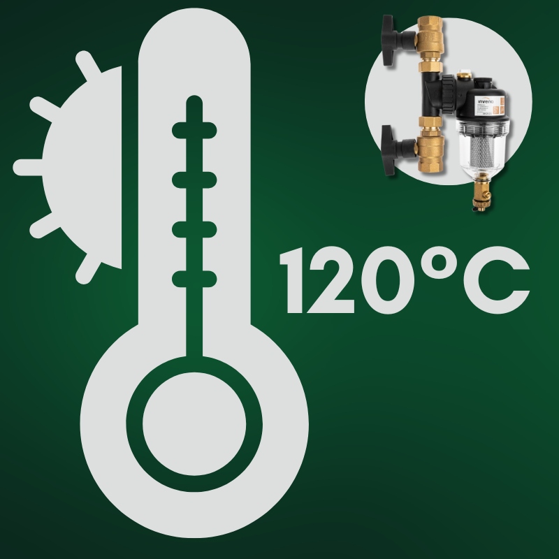 Separator magnetyczny może działać w instalacjach, gdzie temperatura wody lub czynnika grzewczego osiąga nawet 120°C , co czyni go idealnym rozwiązaniem dla systemów centralnego ogrzewania i instalacji przemysłowych.
