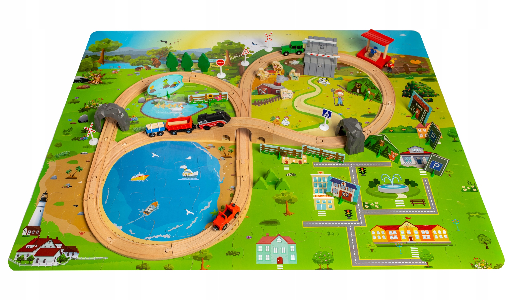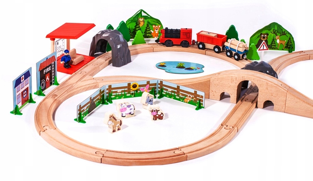Kolorowa drewniana kolejka jest ponadczasowa, uniwersalna i inspirująca do wielu godzin wspanialej i kreatywnej zabawy.