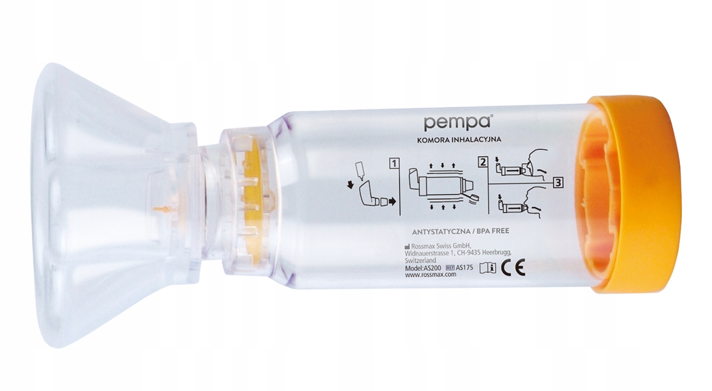PEMPA S200-современная и инновационная трубка для ингалятора MDI. Благодаря ей доставлено будет соответствующая доза лекарства, что невозможно получить без использования камеры. Применяется современный однонаправленный клапан с высокой эффективностью, облегчает выполнение вдохов и выдохи. Для более эффективного процесса ингаляции была использована инновационная антистатическая камера, которая обеспечивает доставку нужного количества лекарственного средства, предотвращая оседание частиц на стенками трубки.