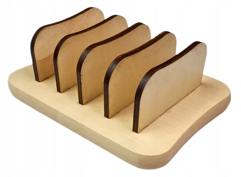 ➡️ Stojak wykonany jest z drewna bukowego, przegrody wykonane ze sklejki.