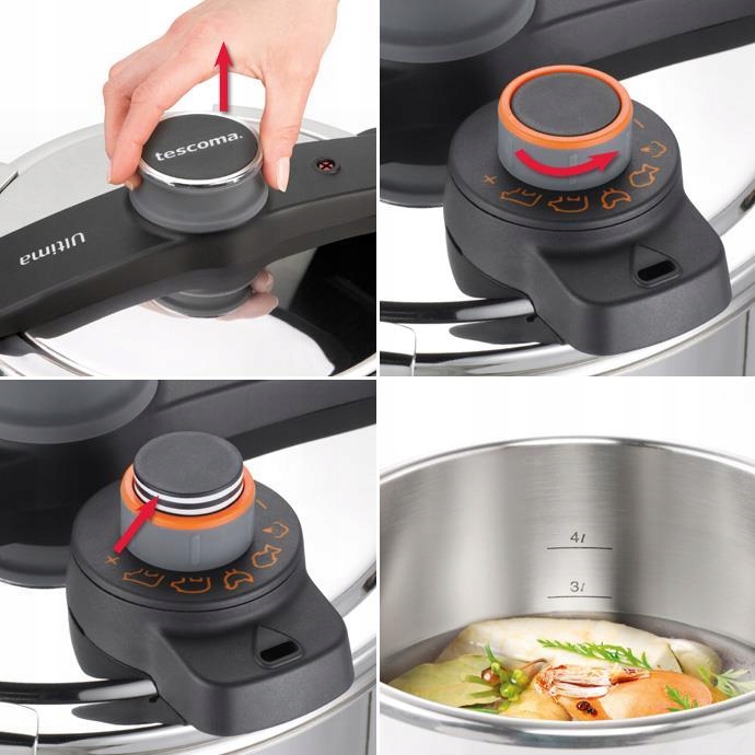 Gotowanie pod ciśnieniem nigdy nie było łatwiejsze, bezpieczniejsze i bardziej praktyczne. Przedstawiamy luksusowy szybkowar ULTIMA z wyjątkowo łatwym ustawieniem idealnego ciśnienia, co pozwala szybko ugotować różne rodzaje potraw bez ryzyka przypalenia.