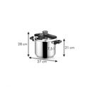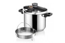 Garnek zawiera również sitko do gotowania na parze do przygotowywania delikatnie gotowanych na parze posiłków.
