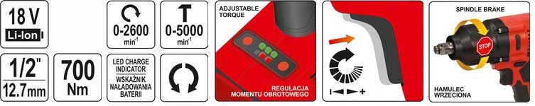 Akumulatorowy klucz 1/2″ marki YATO to optymalne połączenie mocnego silnika bezszczotkowego i wytrzymałego mechanizmu udarowego z technologią akumulatorów Li-Ion.