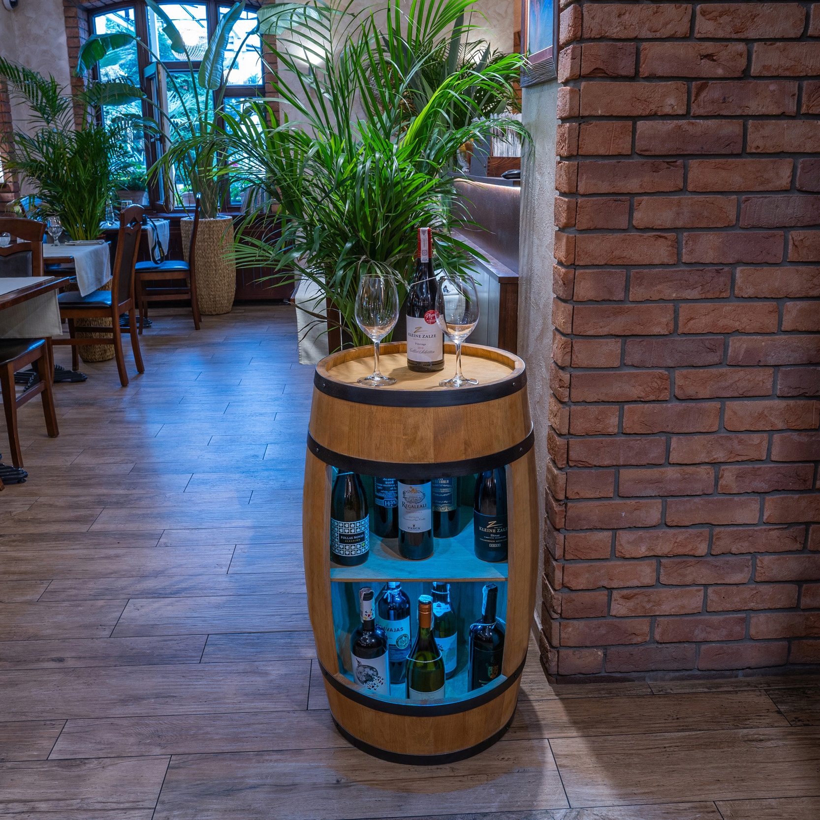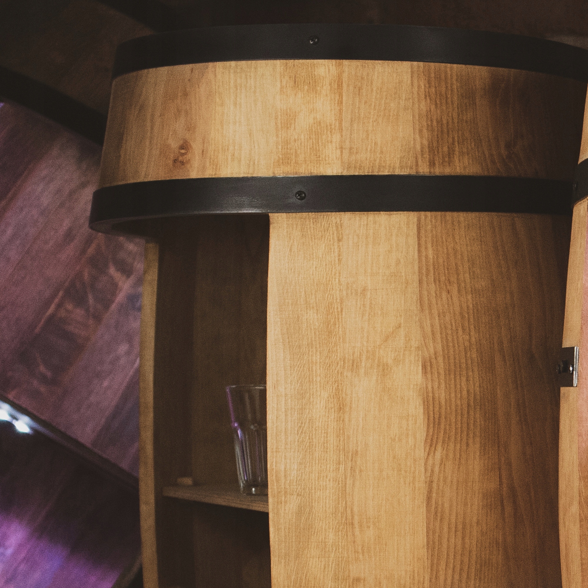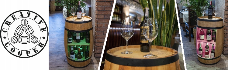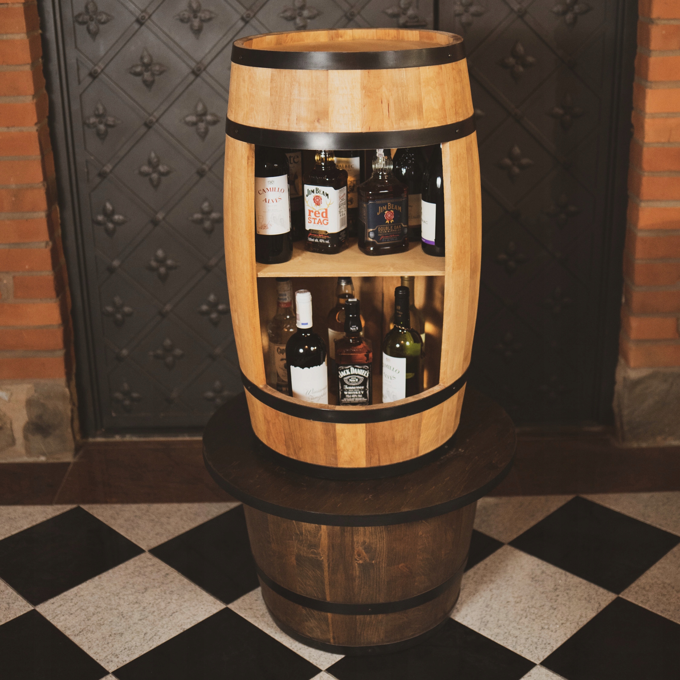 Beczka – barek z półką to wyjątkowy mebel zapewniający unikalną dekorację wnętrza połączoną z praktycznym zastosowaniem. Każda beczka jest ręcznie robiona zaczynając od cięcia desek w tartaku kończąc na ręcnym ściąganiu bednarek nadających beczce jej wyjątkowy wypukły kształt. Barek mieści ok. 40 butelek (w zależności od kształtu i rozmiaru).