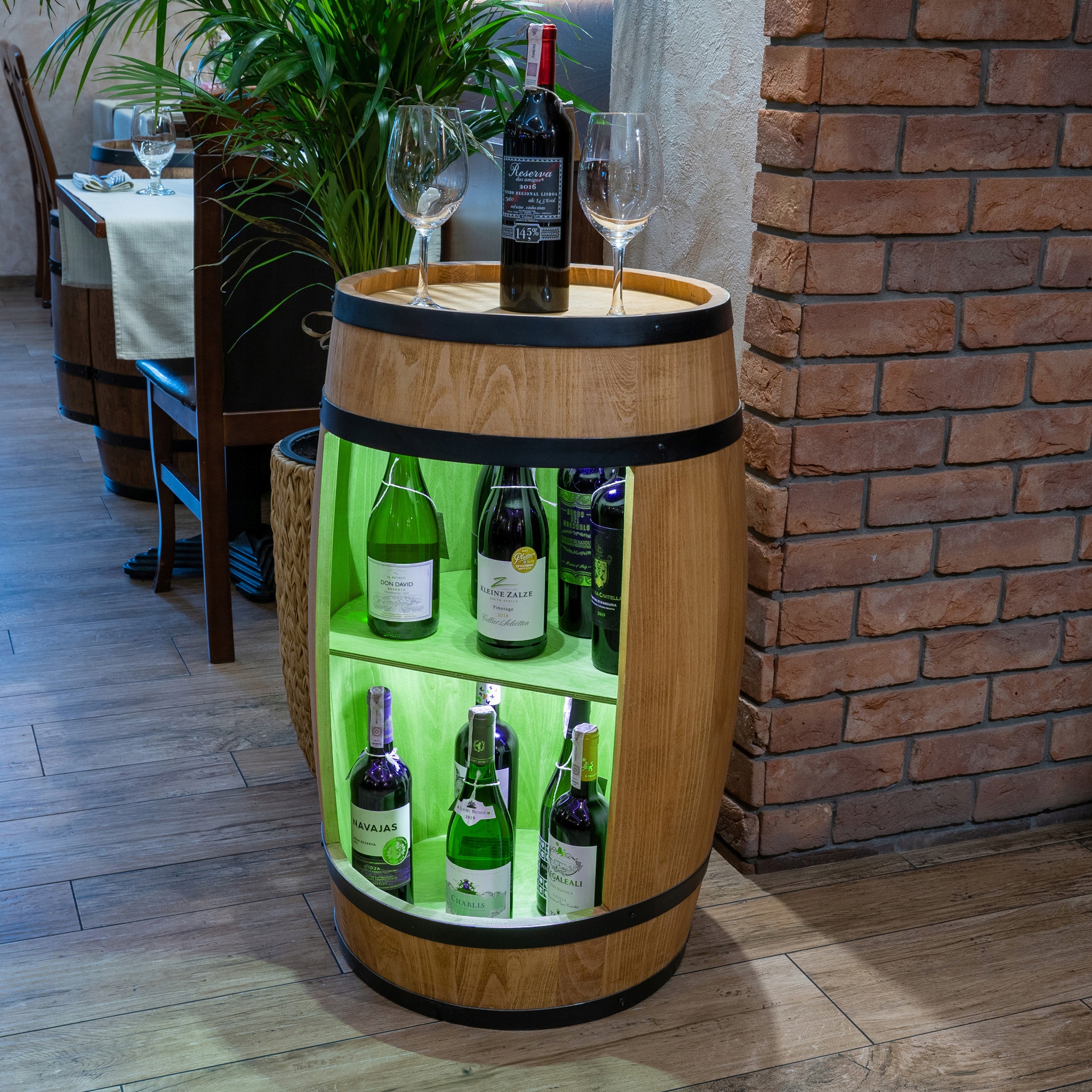 В дополнение к уникальному и эксклюзивному внешнему виду, бар, сделанный из деревянной бочки ручной работы это практичный предмет мебели для ваших вин и других напитков.