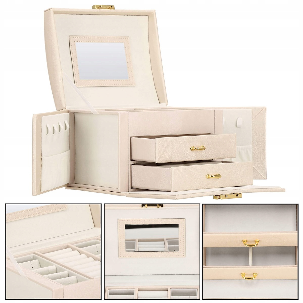 Коробка имеет дополнительное место для хранение в нижних ящиках. Таким образом, вы можете разместить внутри больше драгоценности. Кроме того, боковые стенки сундука открываются. подвески или ожерелья.